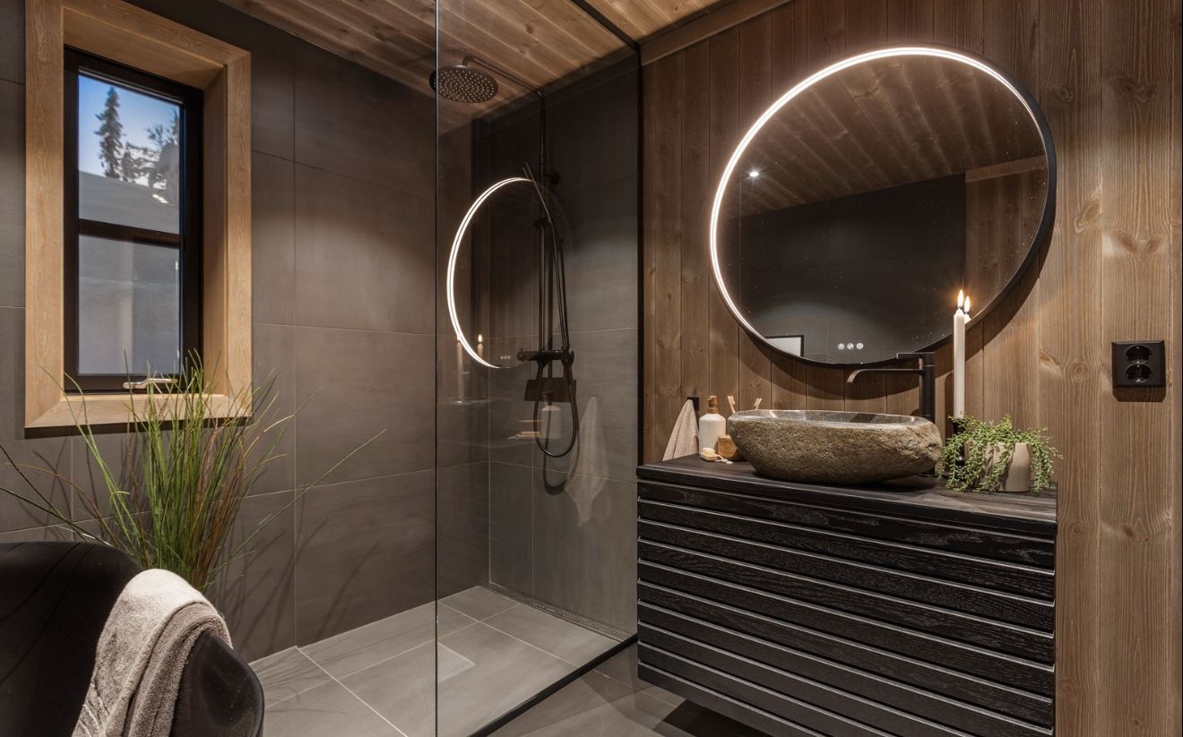 Badkamer 1: douche, toilet, badkuip en sauna.