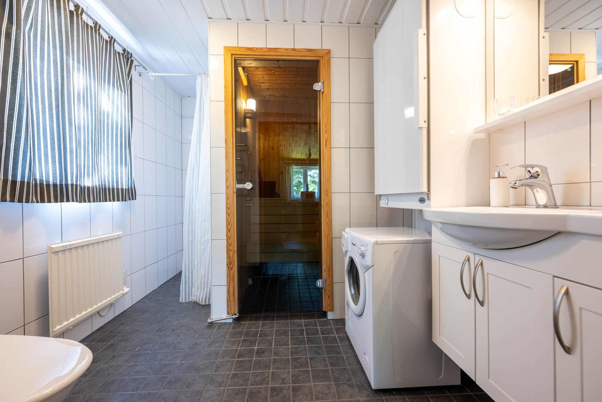 Badkamers:Badkamer 1: met douche/WC/sauna.