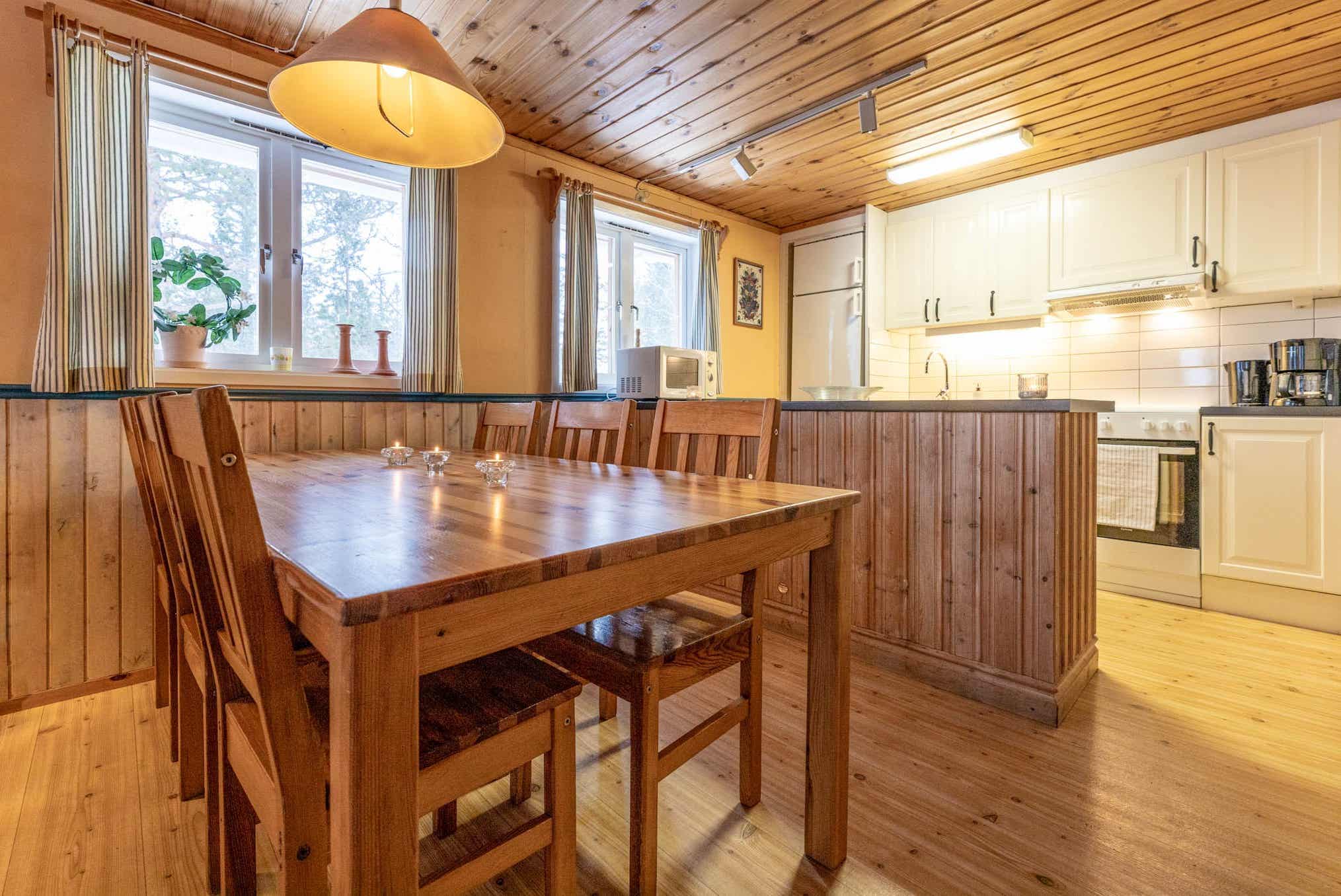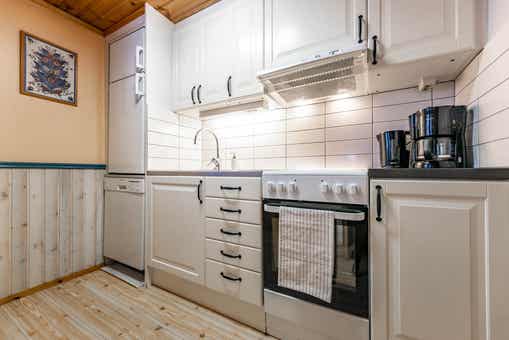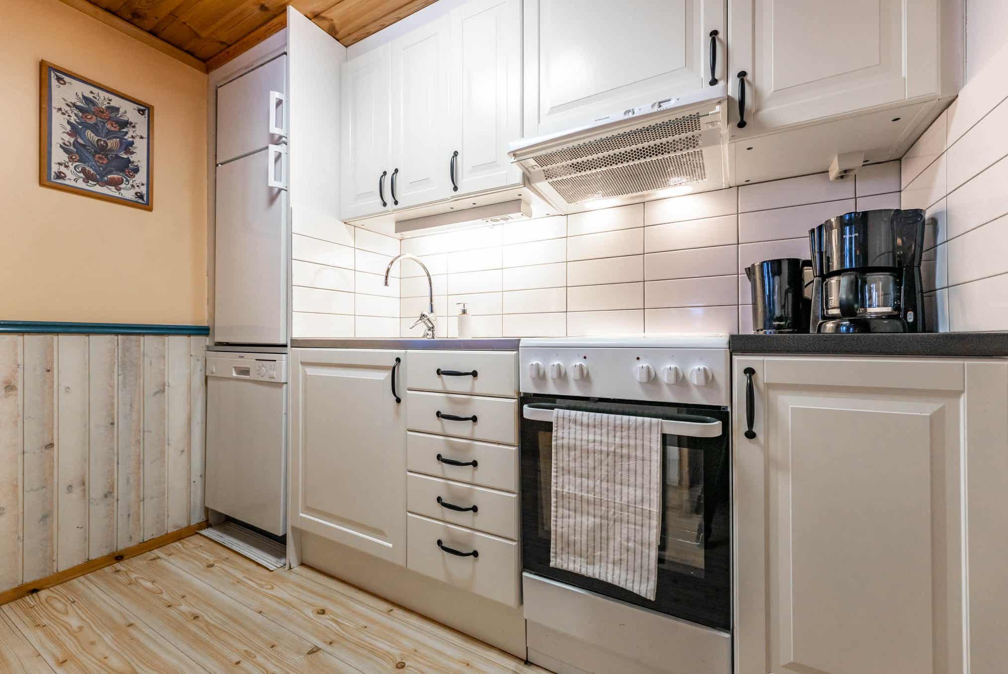De keuken is voorzien van fornuis met 3 kookplaten en oven, koelkast, vaatwasser, magnetron.