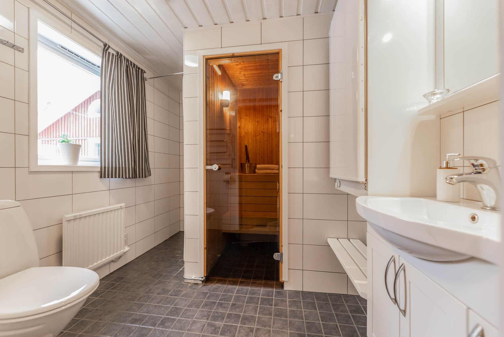 Badkamers:Badkamer 1: met douche/WC/sauna.