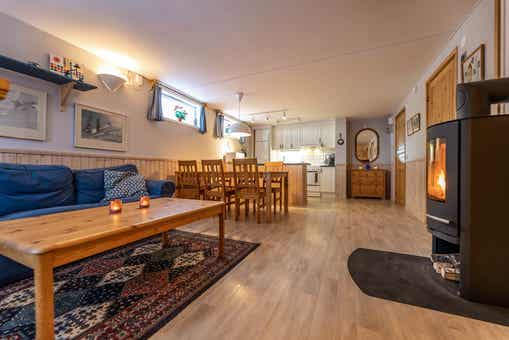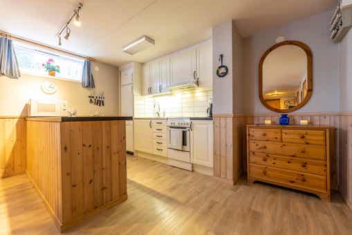 Grandgårdarna ligt in Lindvallen. Appartement op de begane grond, 6 bedden, 52 m², woonkamer met gecombineerde keuken, 2 slaapkamers, 1 douche, 1 toilet, sauna.
