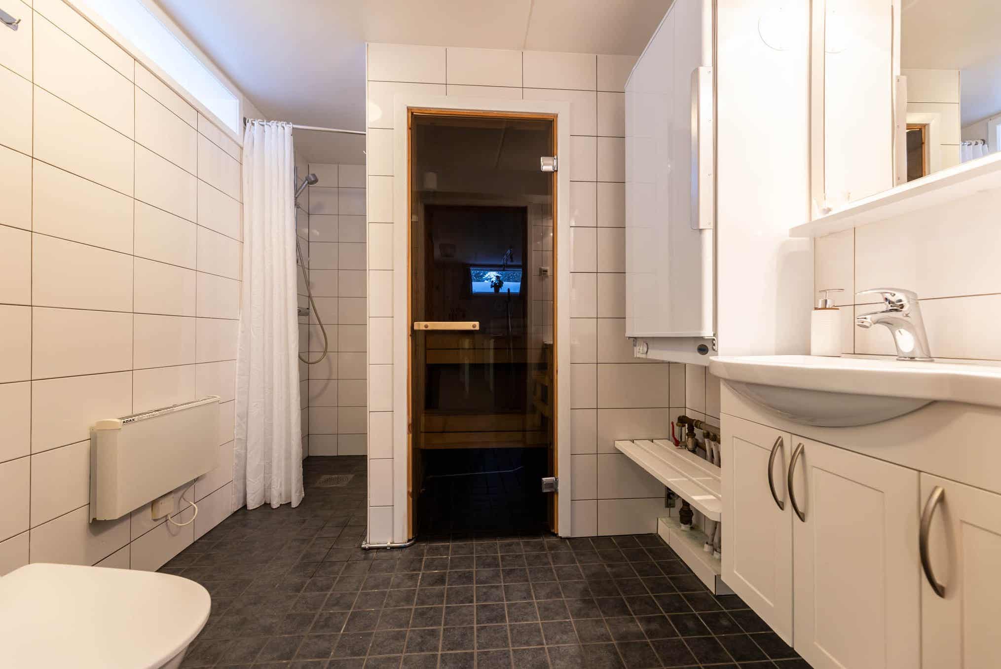Badkamers:Badkamer 1: met douche/WC/sauna.