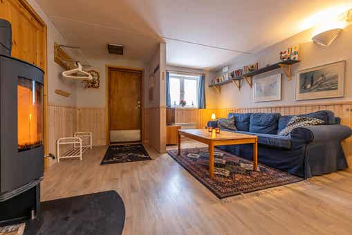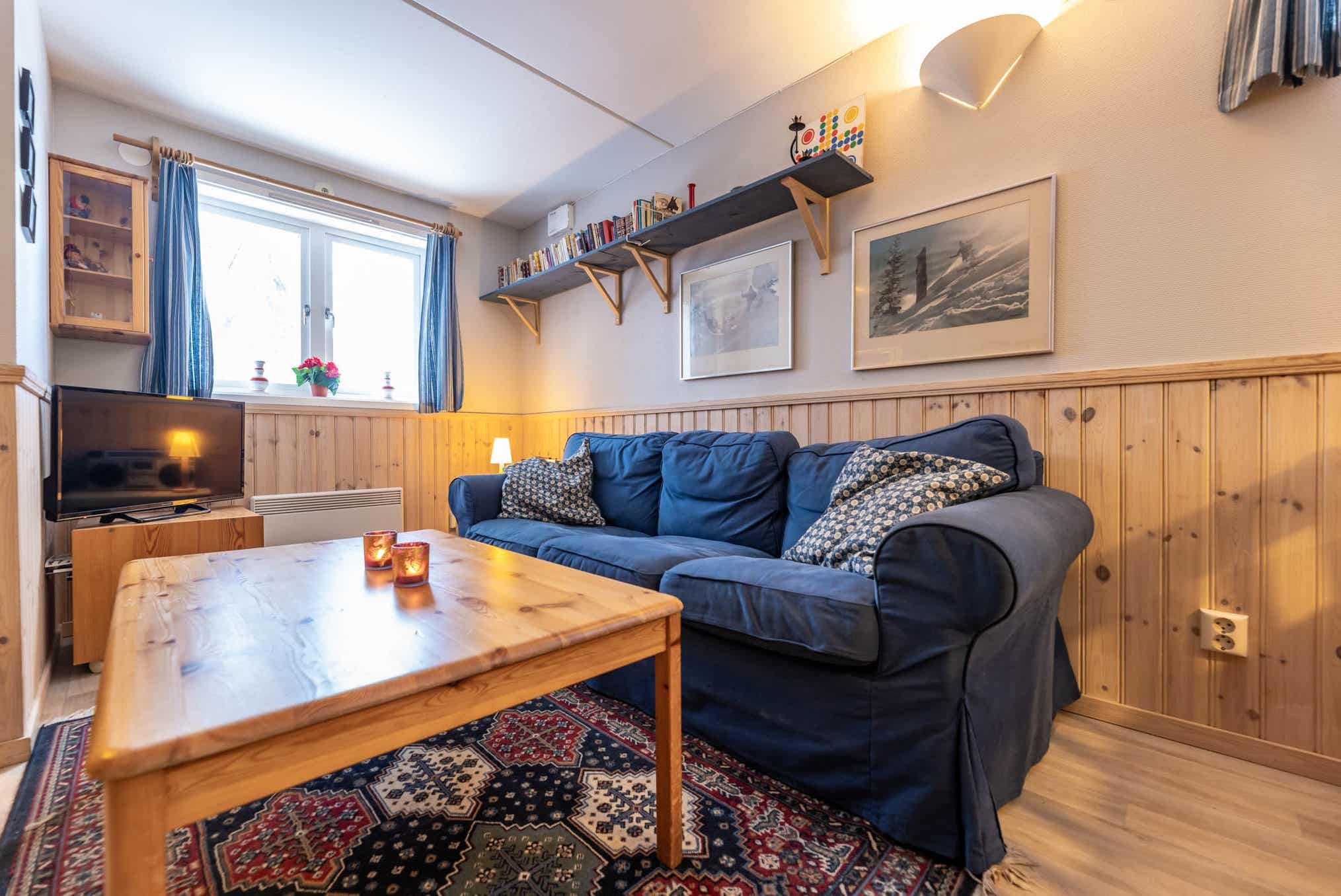 Grandgårdarna ligt in Lindvallen. Appartement op de begane grond, 6 bedden, 52 m², woonkamer met gecombineerde keuken, 2 slaapkamers, 1 douche, 1 toilet, sauna.