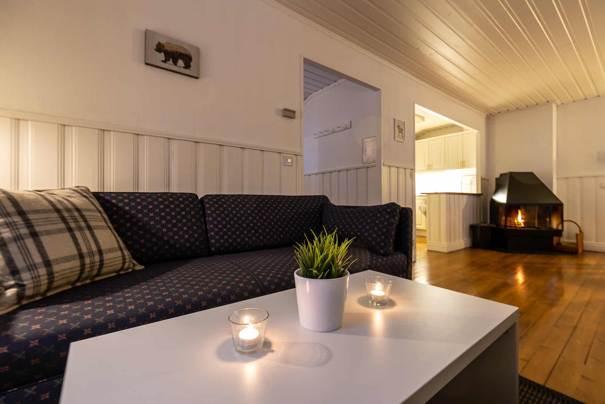 TV, 2 open haarden (hout niet inbegrepen), berging voor ski’s.