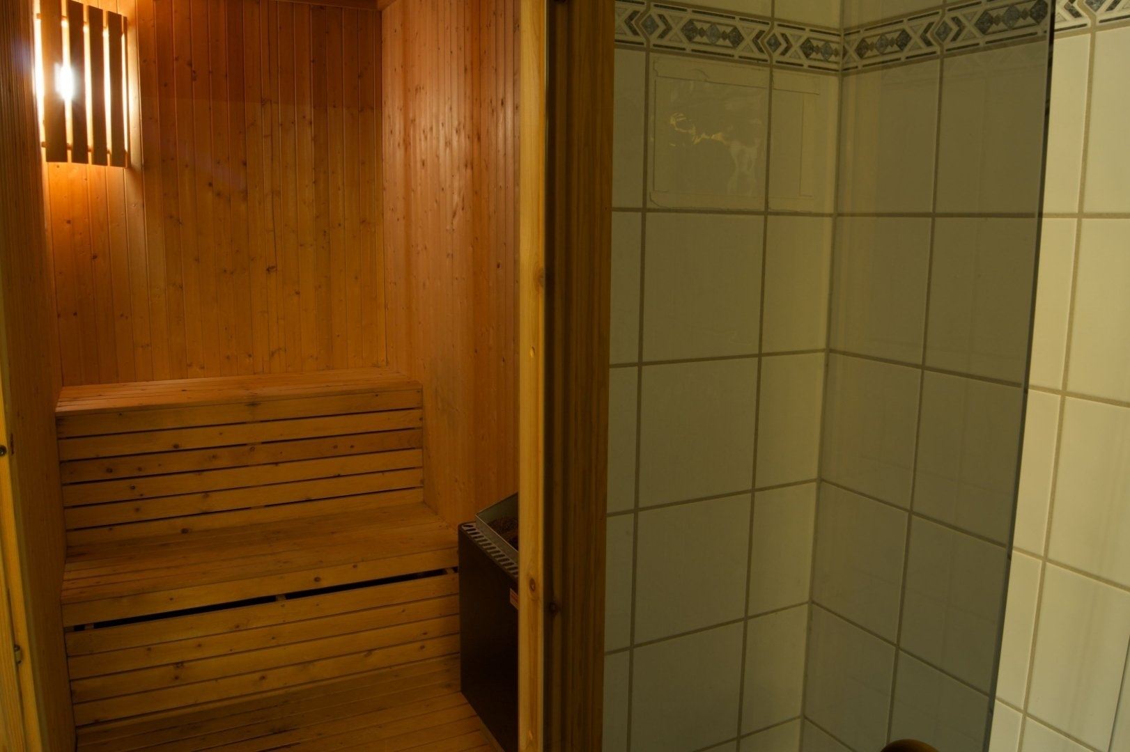 Badkamer 1: Douche, wastafel, toilet en sauna