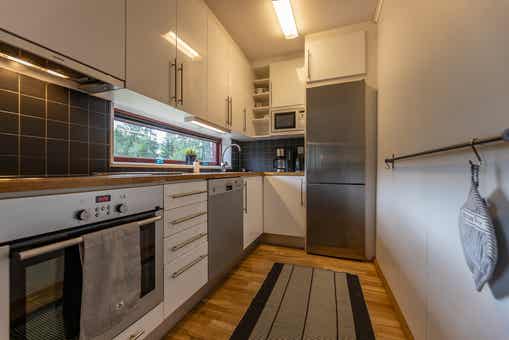Nova ligt in Hundfjället. Appartement op de begane grond, 8 bedden, 70 m², woonkamer met gecombineerde keuken, 3 slaapkamers, 1 douche, 2 WC, sauna.