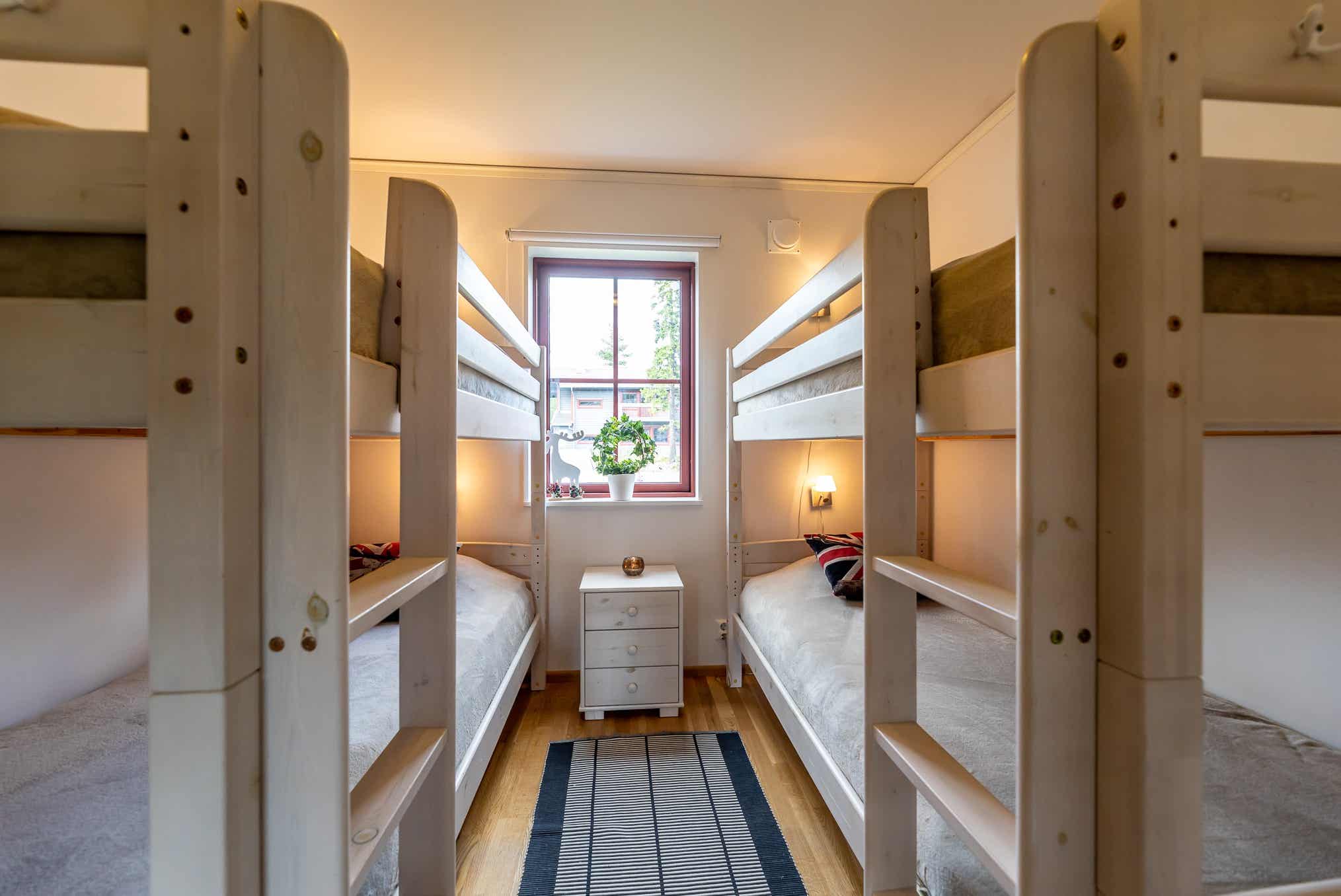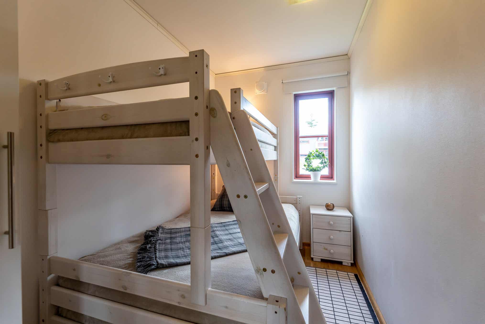 Slaapkamers:Slaapkamer-1 = 1 stapelbed met 120 cm breed onderbed. Slaapkamer-2 = 2 stapelbedden. Slaapkamer-3 = 1 tweepersoonsbed 160 cm breed.