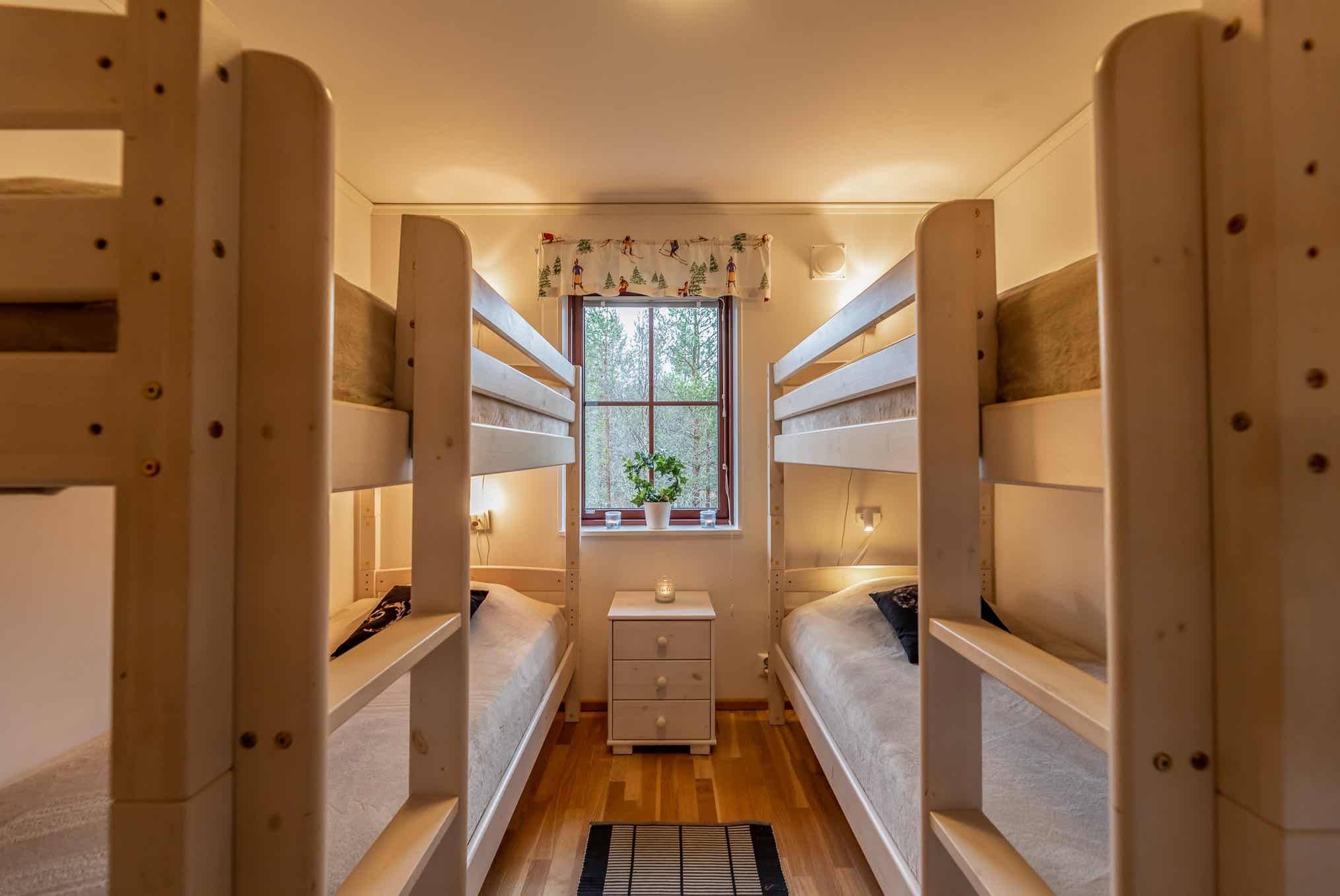 Slaapkamers:Slaapkamer-1 = 1 tweepersoonsbed. Slaapkamer-2 = 1 stapelbed met 120 cm breed onderbed. Slaapkamer-3 = 2 stapelbedden.