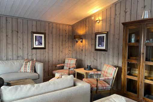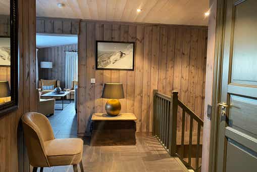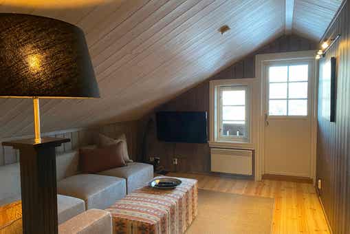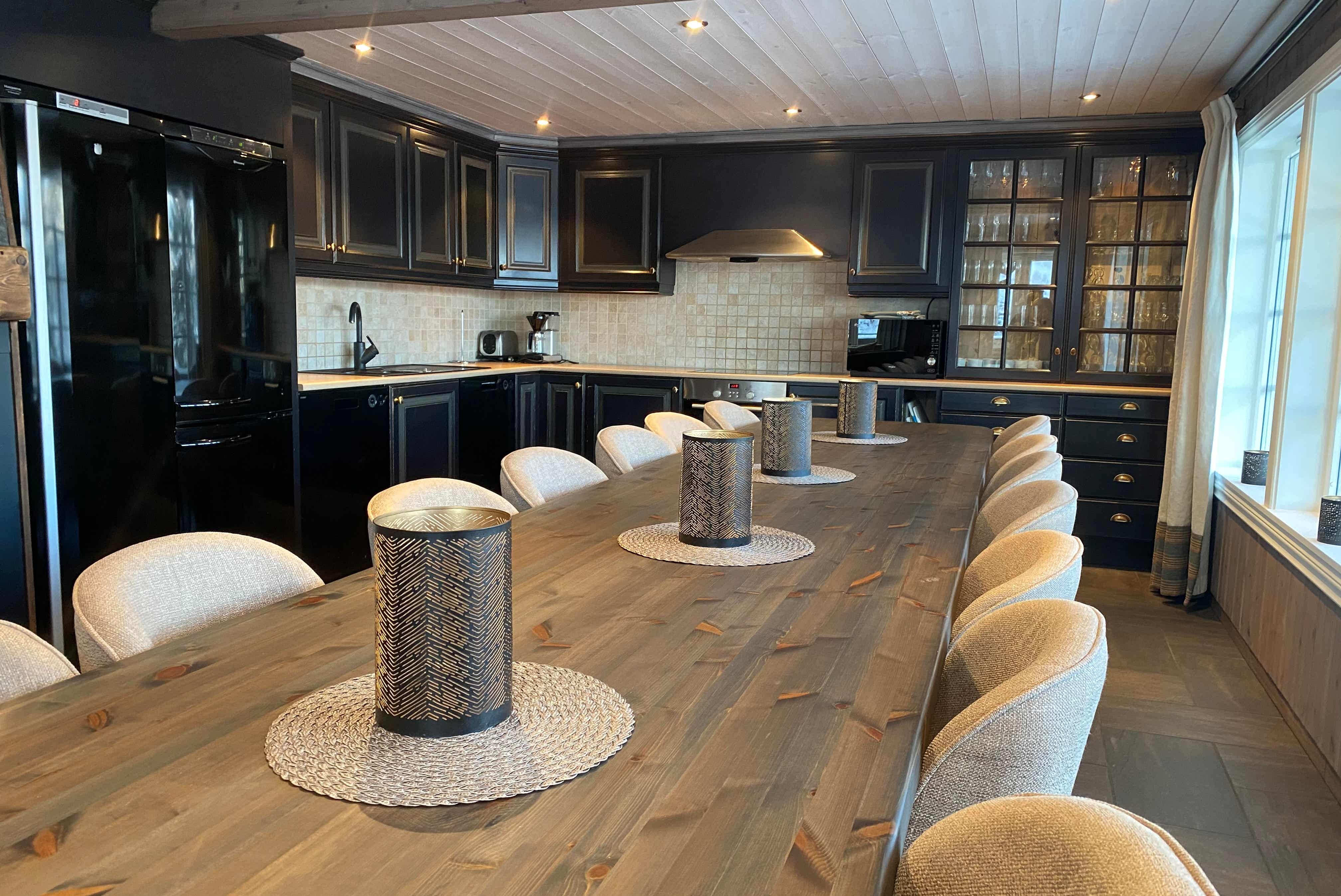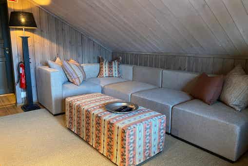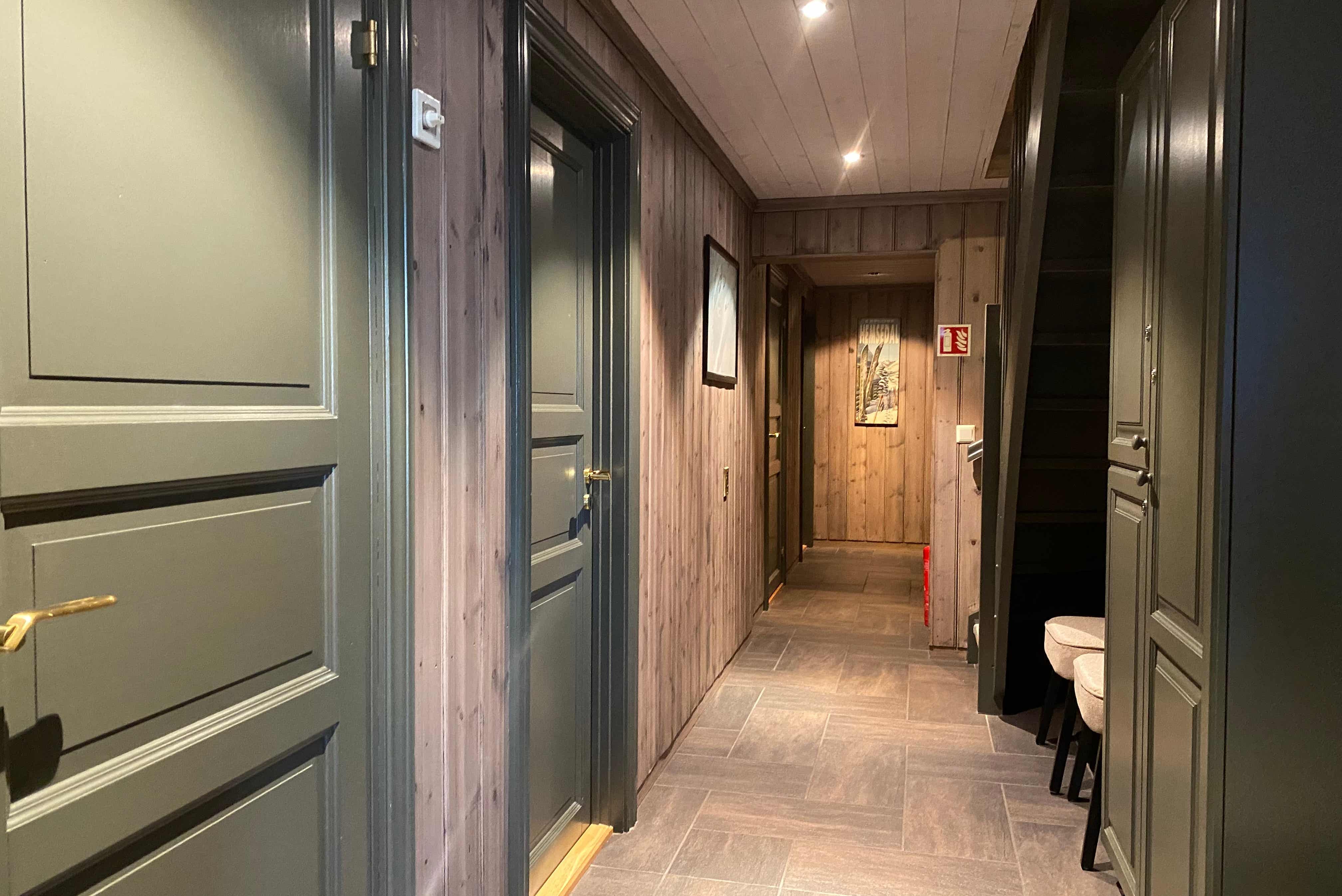 Nuten bevindt zich in Hemsedal Skisenter. Cabine, 17+1 bedden, 274 m², woonkamer met gecombineerde keuken, 7 slaapkamers, 3 douches, 4 WC, 1 sauna, whirlpool.