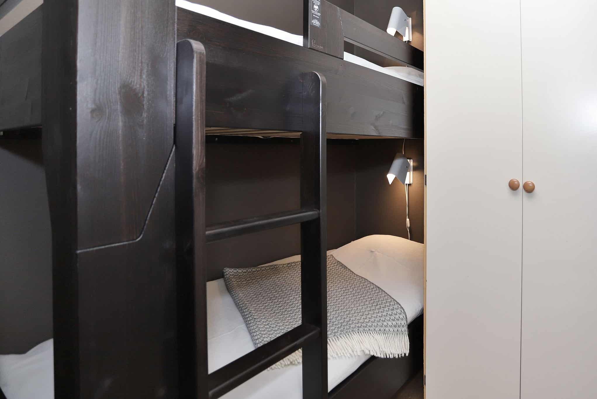 Nya Lundsgården ligt in Åre By. Appartement op verdieping 4, 6 bedden, 60 m², woonkamer met gecombineerde keuken, 3 slaapkamers, 1 douche, 1 toilet.