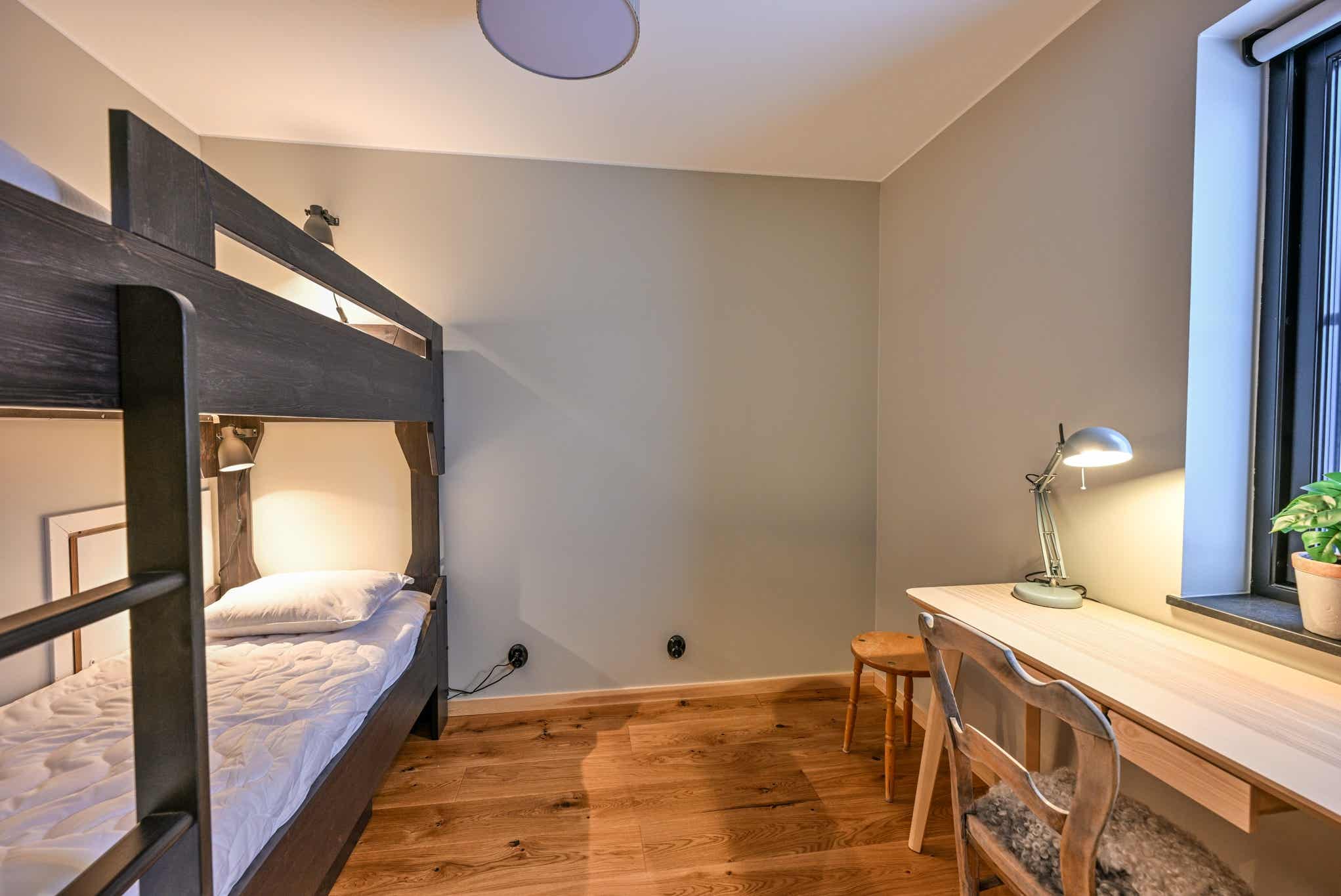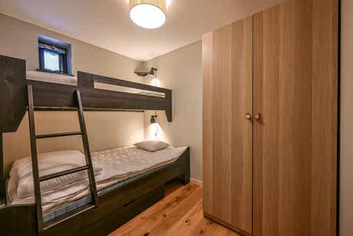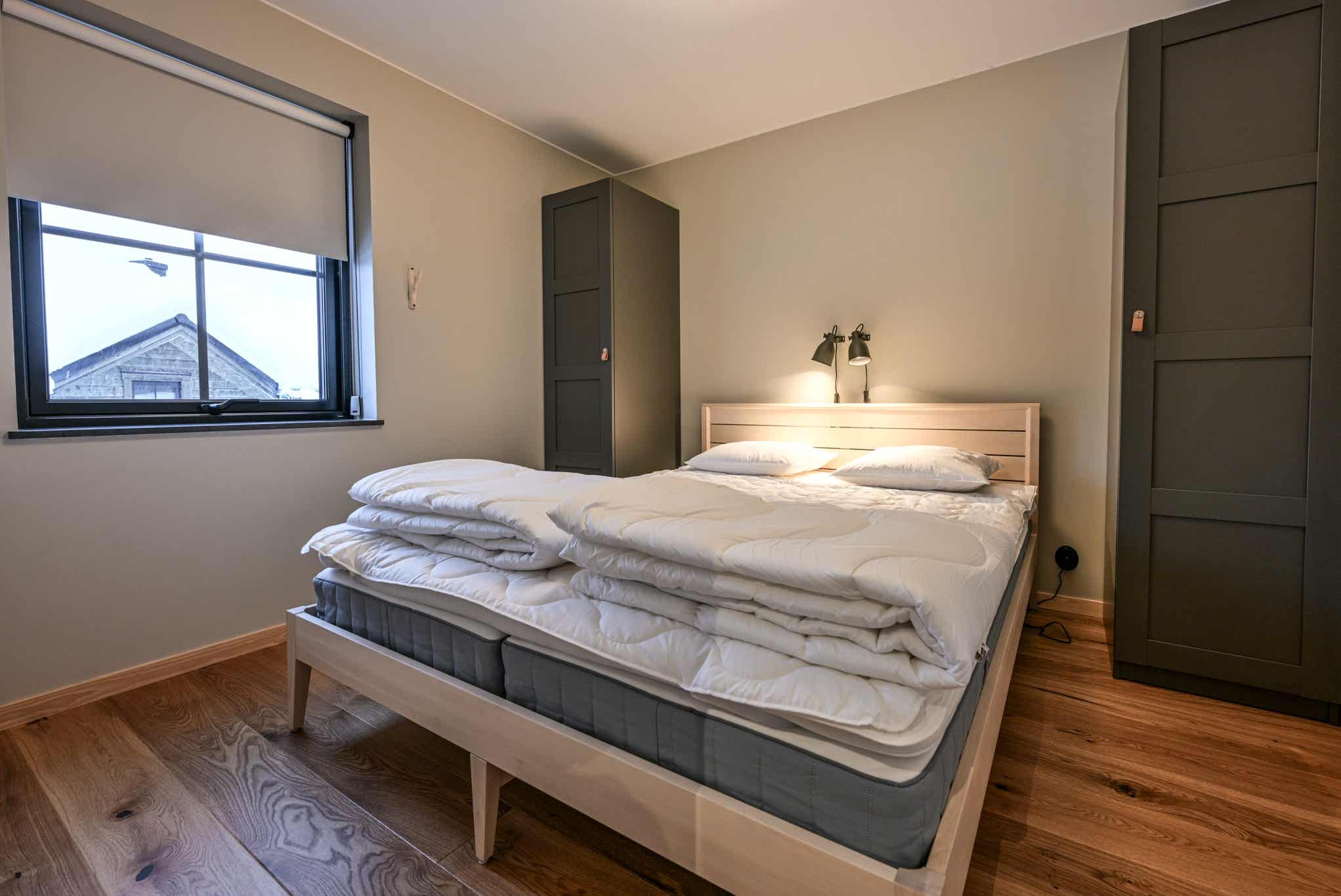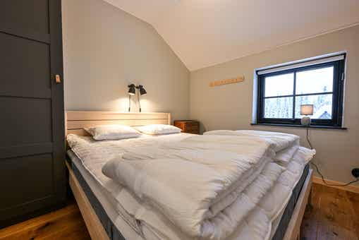 Slaapkamers:Slaapkamer-1 = 1 tweepersoonsbed 160 cm breed. Slaapkamer-2 = 1 tweepersoonsbed 160 cm breed. Slaapkamer-3 = 1 stapelbed met 120 cm breed onderbed en 80 cm breed bovenbed. Slaapkamer-4 = 1 stapelbed.