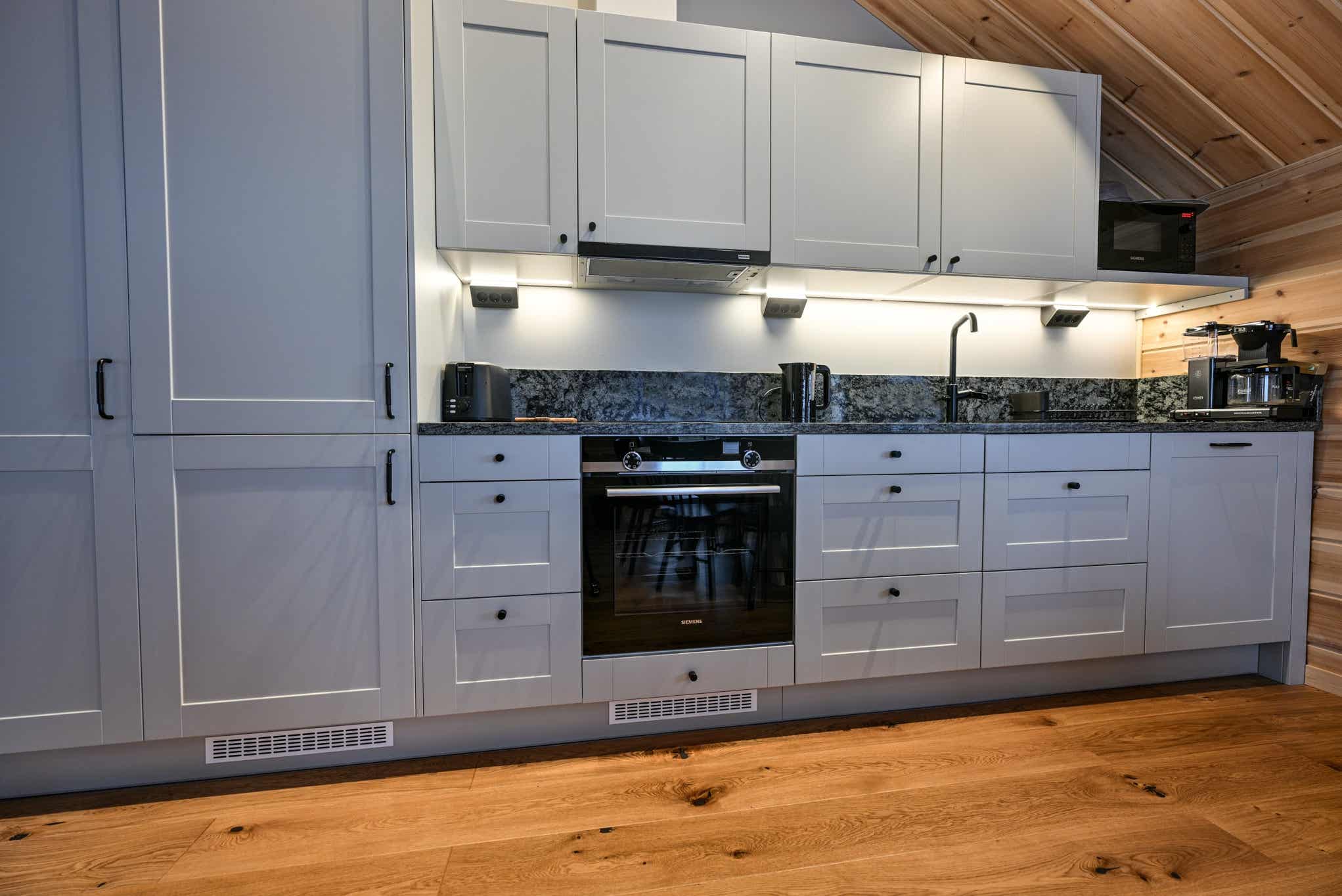 De keuken is voorzien van elektrische kookplaat, inbouwoven, koelkast, vriezer, vaatwasser, magnetron.