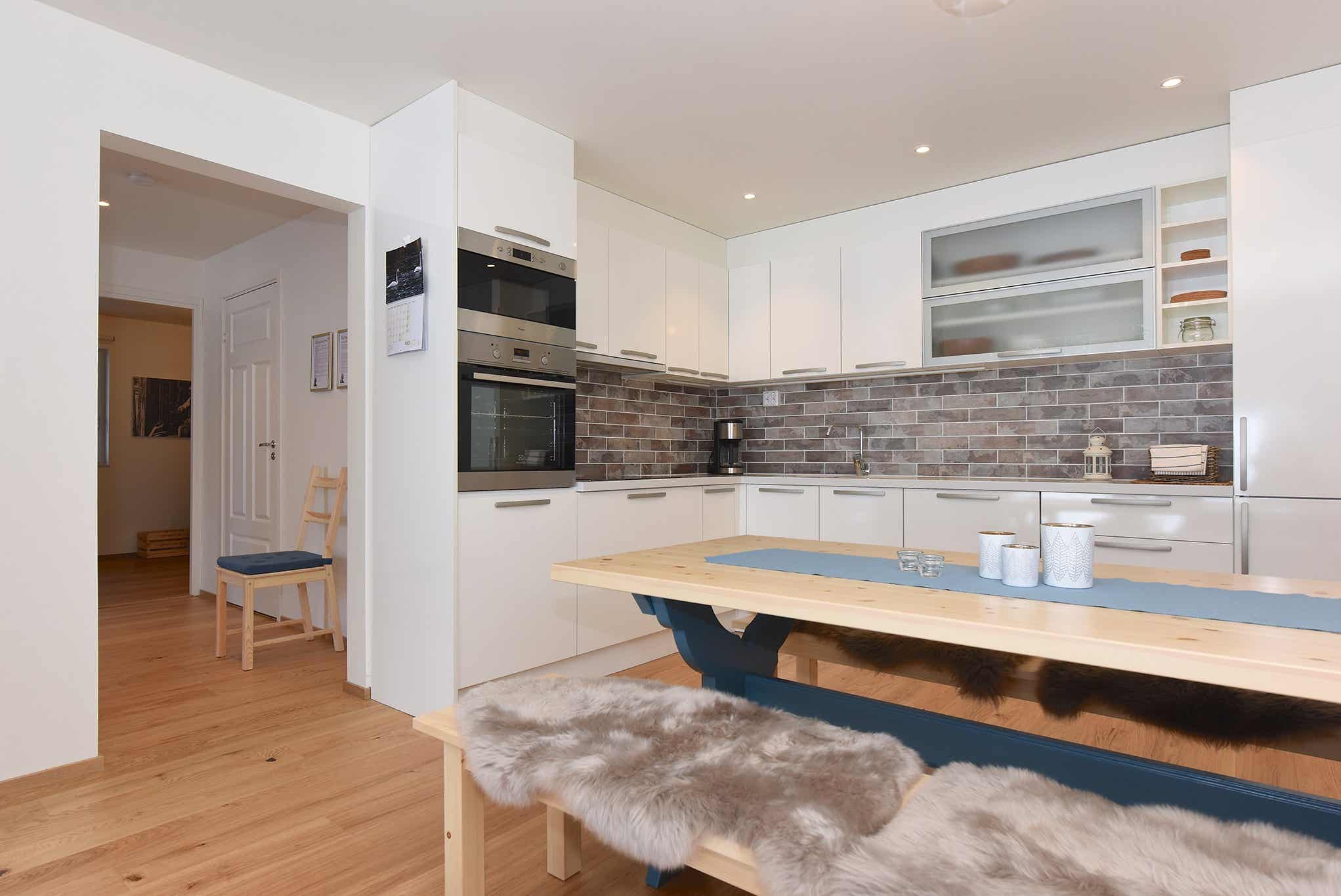 De keuken is voorzien van elektrische kookplaat, inbouwoven, koelkast, vriezer, vaatwasser, magnetron.