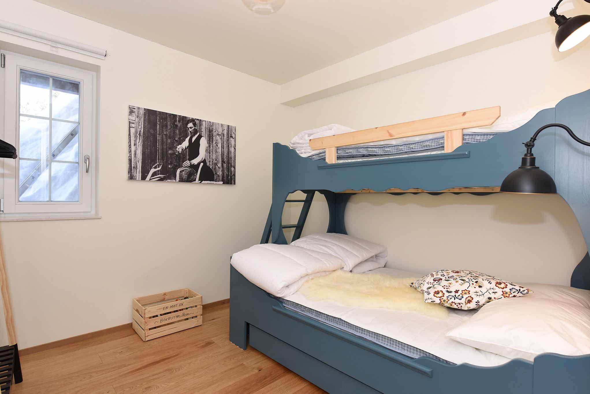 Slaapkamers:Slaapkamer-1 = 1 tweepersoonsbed. Slaapkamer-2 = 1 stapelbed met 120 cm breed onderbed.
