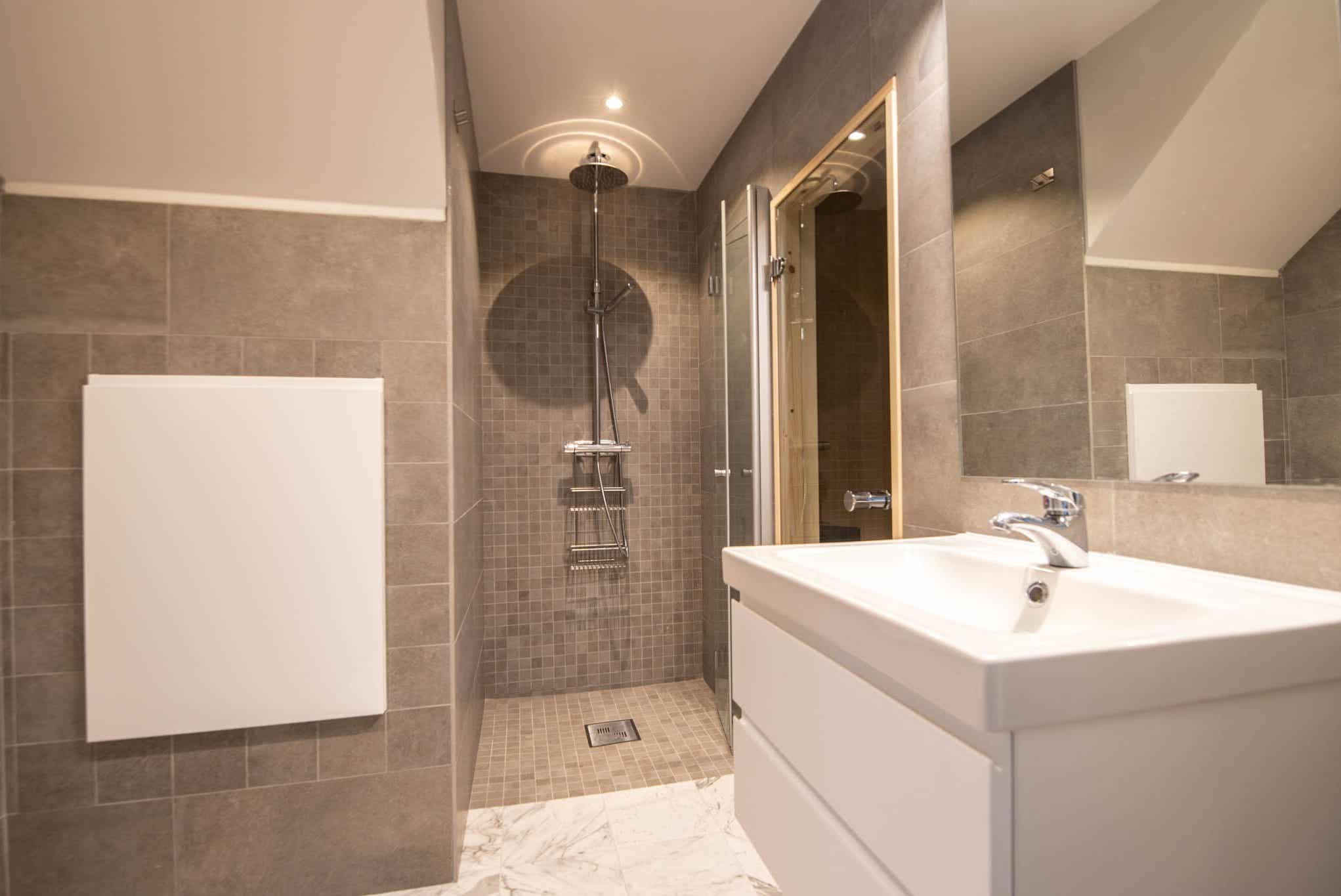 Badkamers:Badkamer 1: met douche/WC/sauna.