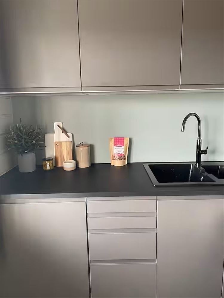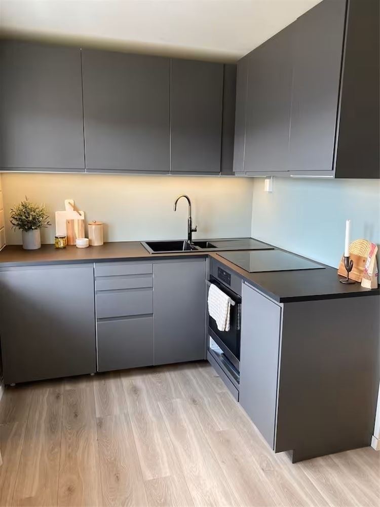 De keuken is voorzien van een kookplaat, koelkast, vriezer, vaatwasser, magnetron en koffiezetapparaat.