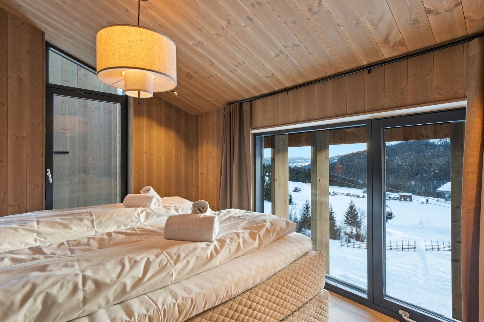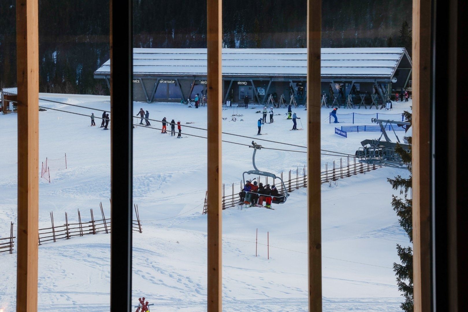 Geen druk centrum, maar wel knusse cabins, haardvuren en ski-in/ski-out lodges met uitzicht. Gezinnen vinden overzichtelijke kinderzones en een funslope, terwijl de rustige sfeer zorgt voor ontspannen vakantiedagen in de sneeuw.