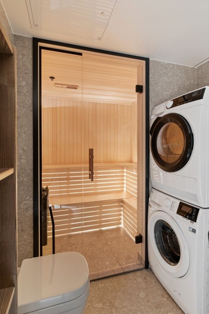 Badkamer 1: Douche, toilet en sauna