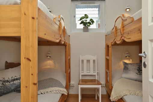 Slaapkamers:Slaapkamer 1 = 1 tweepersoonsbed 180 cm breed. Slaapkamer 2 = 2 stapelbedden.