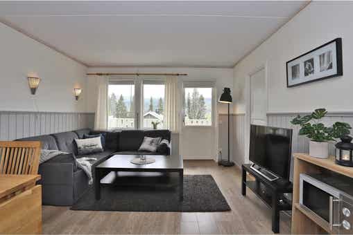 TV, balkon (niet geruimd), droogkast, afsluitbare skiberging, 1 parkeerplaats met stroom voor motorvoorverwarmer.