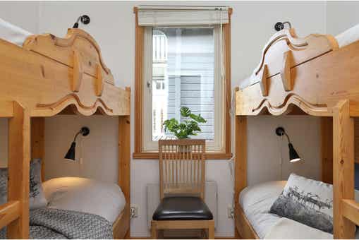 Slaapkamers:Slaapkamer 1 = 2 eenpersoonsbedden. Slaapkamer 2 = 2 stapelbedden.