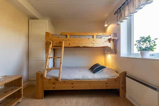 Slaapkamers:Slaapkamer-1 = 1 tweepersoonsbed. Slaapkamer-2 = 1 stapelbed met breed onderbed. Slaapkamer-3 = 2 stapelbedden.