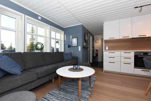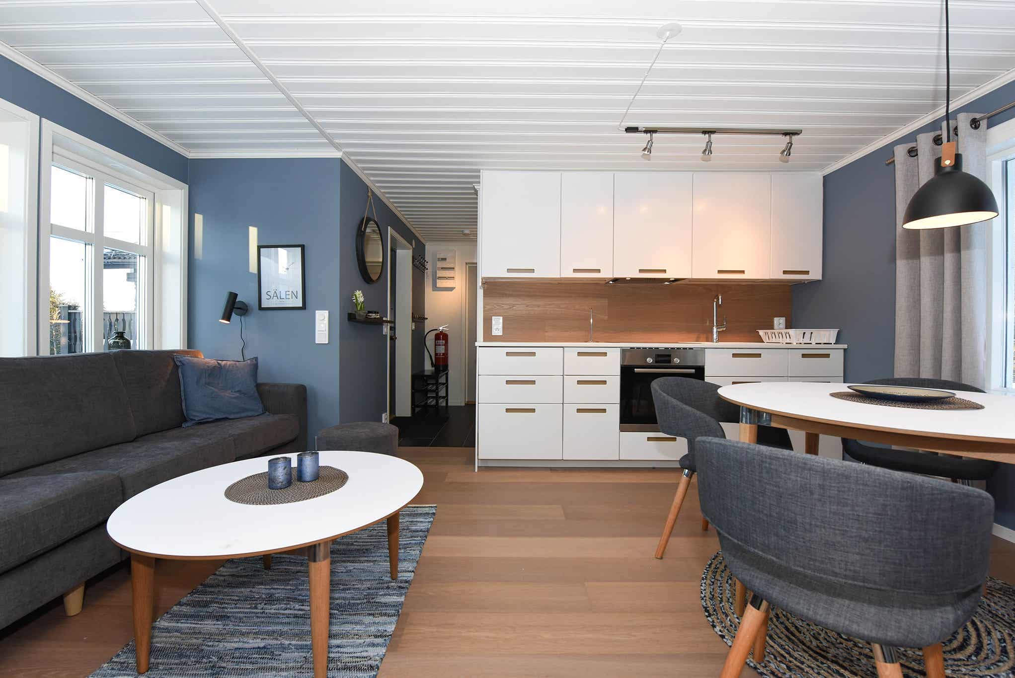 Woonkamer met gecombineerde keuken.