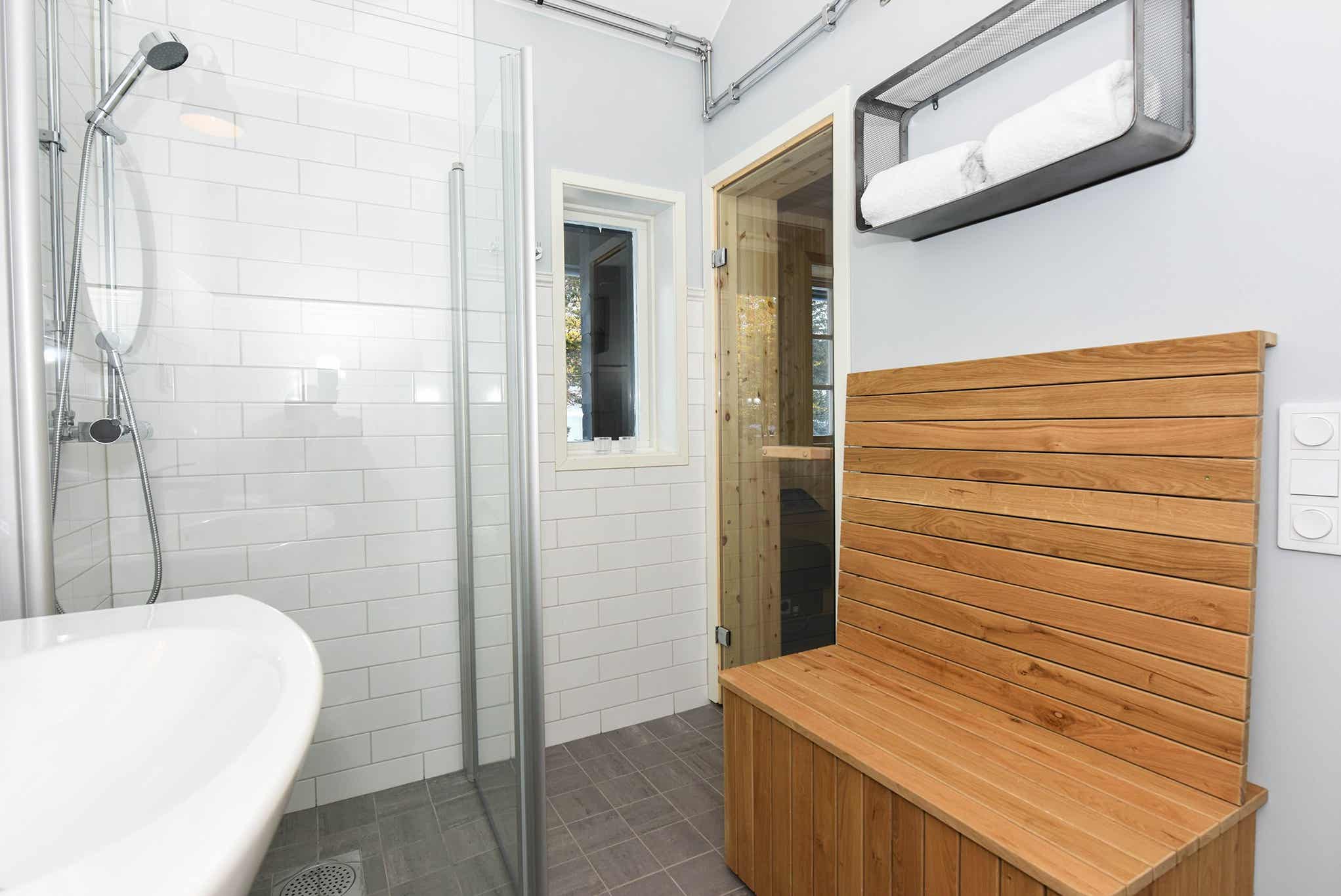 Badkamers:Badkamer 1: met douche/WC/sauna.