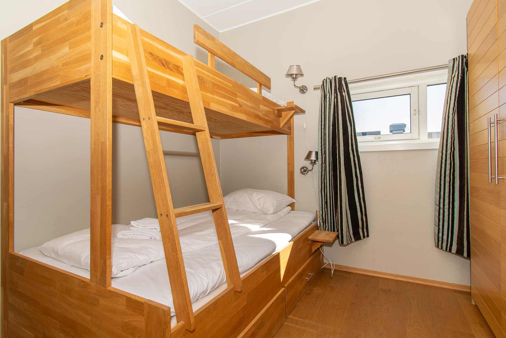 Slaapkamers:Slaapkamer 1= 1 tweepersoonsbed 180 cm breed. Slaapkamer 2= 1 tweepersoonsbed 180 cm breed, slaapbank. Slaapkamer 3= 1 stapelbed met 120 cm breed onderbed. Slaapkamer 4= 1 stapelbed met 120 cm breed onderbed.