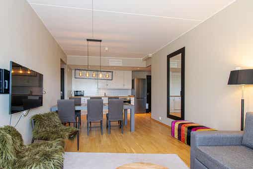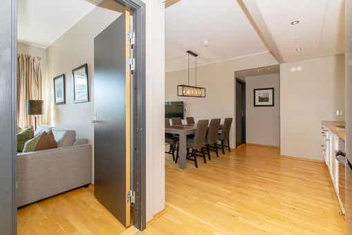 Dit is Trysil Prestige, een concept ontwikkeld voor degenen die hun eigen meester willen zijn, maar nog steeds genieten van de faciliteiten die een hotel kan bieden. Hoeveel en hoe vaak u het hotel gebruikt, is aan u. Zou je in je eigen keuken willen koken, doe dit. Zo niet, dan bent u welkom bij een van de restaurants van het hotel of om bij roomservice te bestellen. Trysil Prestige maakt deel uit van Radisson Blu Resort, gelegen in het midden van de berg met ski in-ski out en ski-opslagif. Je droom is een huisje met een spa, surf voor het ontbijt of skiën gevolgd door bowlen, je zal je hier altijd welkom voelen. Trysil Prestige is klaar om je te verwennen, net zoveel als je wilt.