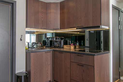De unit is voorzien van kookplaten, oven, koelkast, vaatwasser, magnetron.