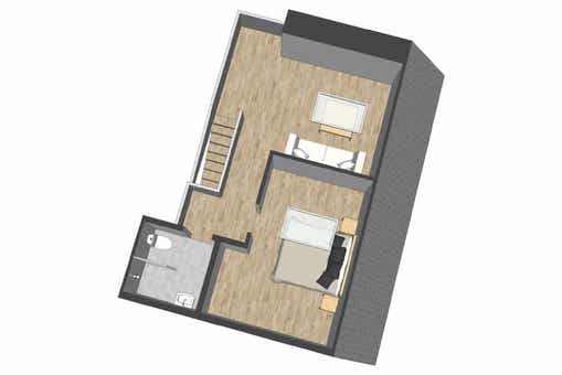 Slaapkamers:Slaapkamer 1= 1 tweepersoonsbed, slaapbank. Slaapkamer 2= 1 tweepersoonsbed. Slaapkamer 3= 1 tweepersoonsbed. Slaapkamer 4= 1 stapelbed met 120 cm breed onderbed. Slaapkamer 5= 1 stapelbed met 120 cm breed onderbed.