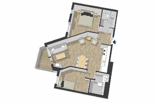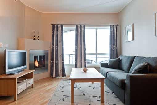 Appartement op zevende verdieping, 4 bedden, 75 m², woonkamer met gecombineerde keuken, 2 slaapkamers, 2 douches, 2 WC.