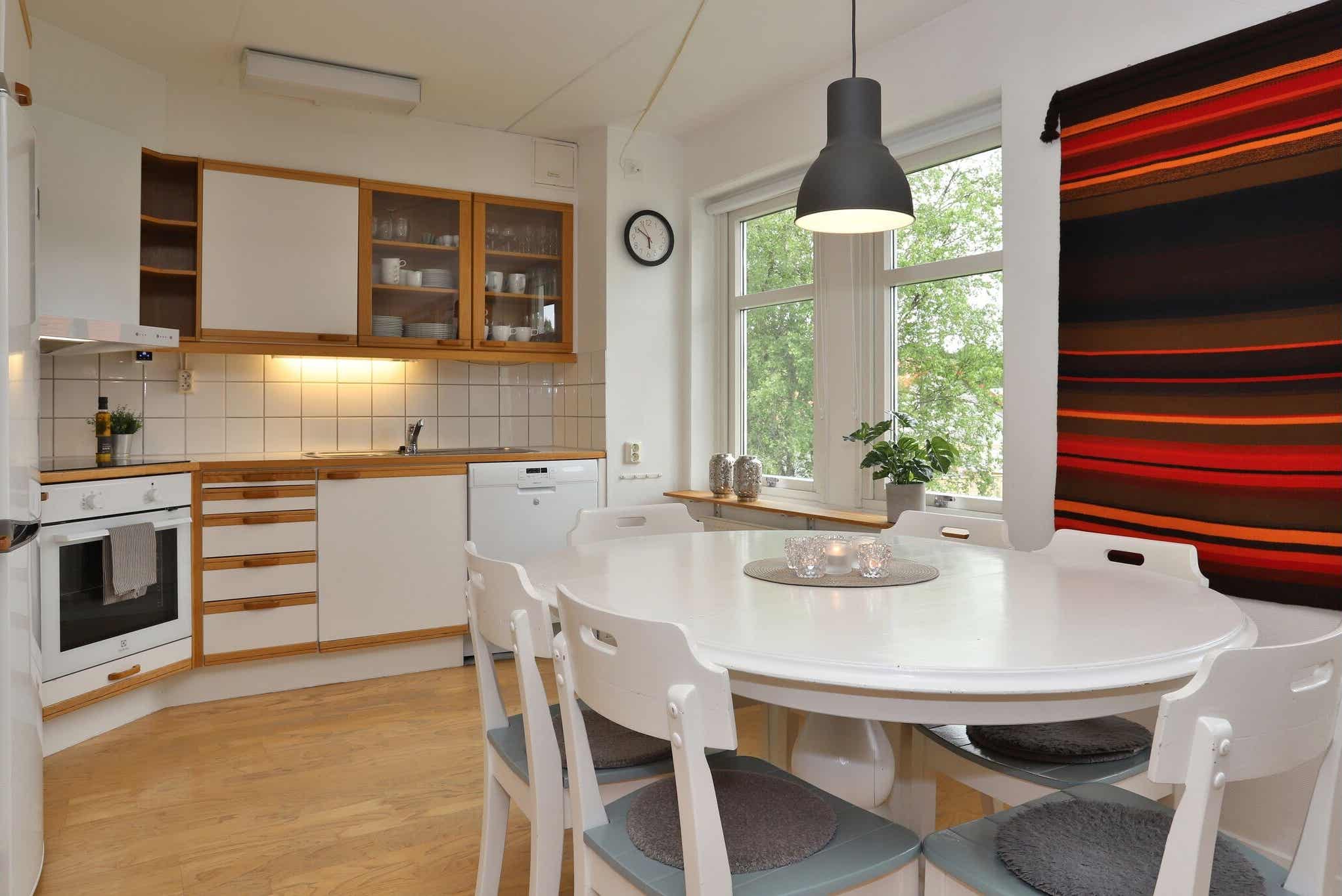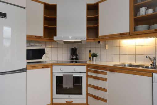 Keuken is voorzien van fornuis met oven, koelkast met vriesvak, vaatwasser, magnetron.