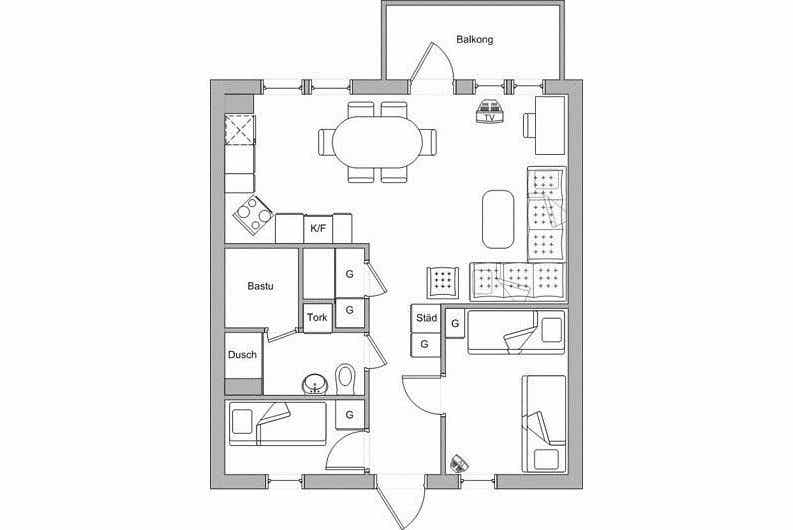 Renen Duved bevindt zich in Duved. Appartement op verdieping 2, 6 bedden, 57 m², woonkamer met gecombineerde keuken, 2 slaapkamers, 1 douche, 1 toilet, sauna.