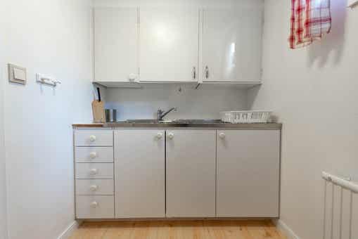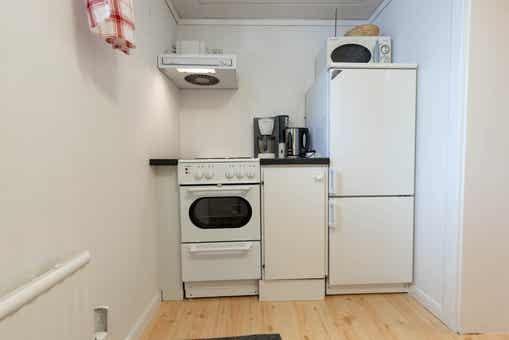 De keuken is voorzien van fornuis met oven, koelkast, vriezer, magnetron.