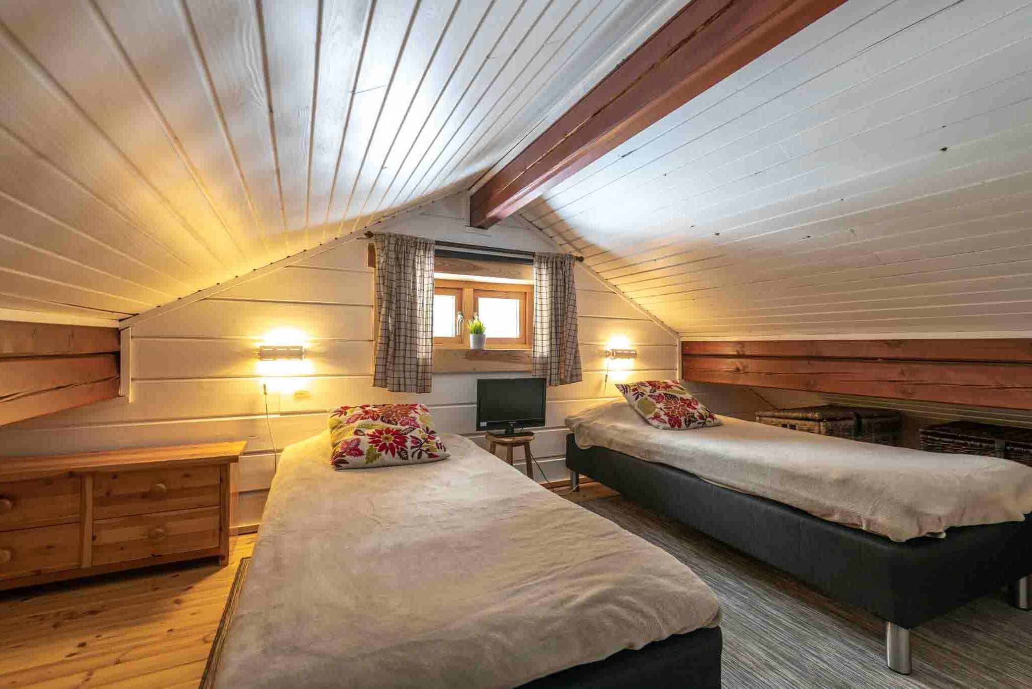Zolder 1 = 2 eenpersoonsbedden.