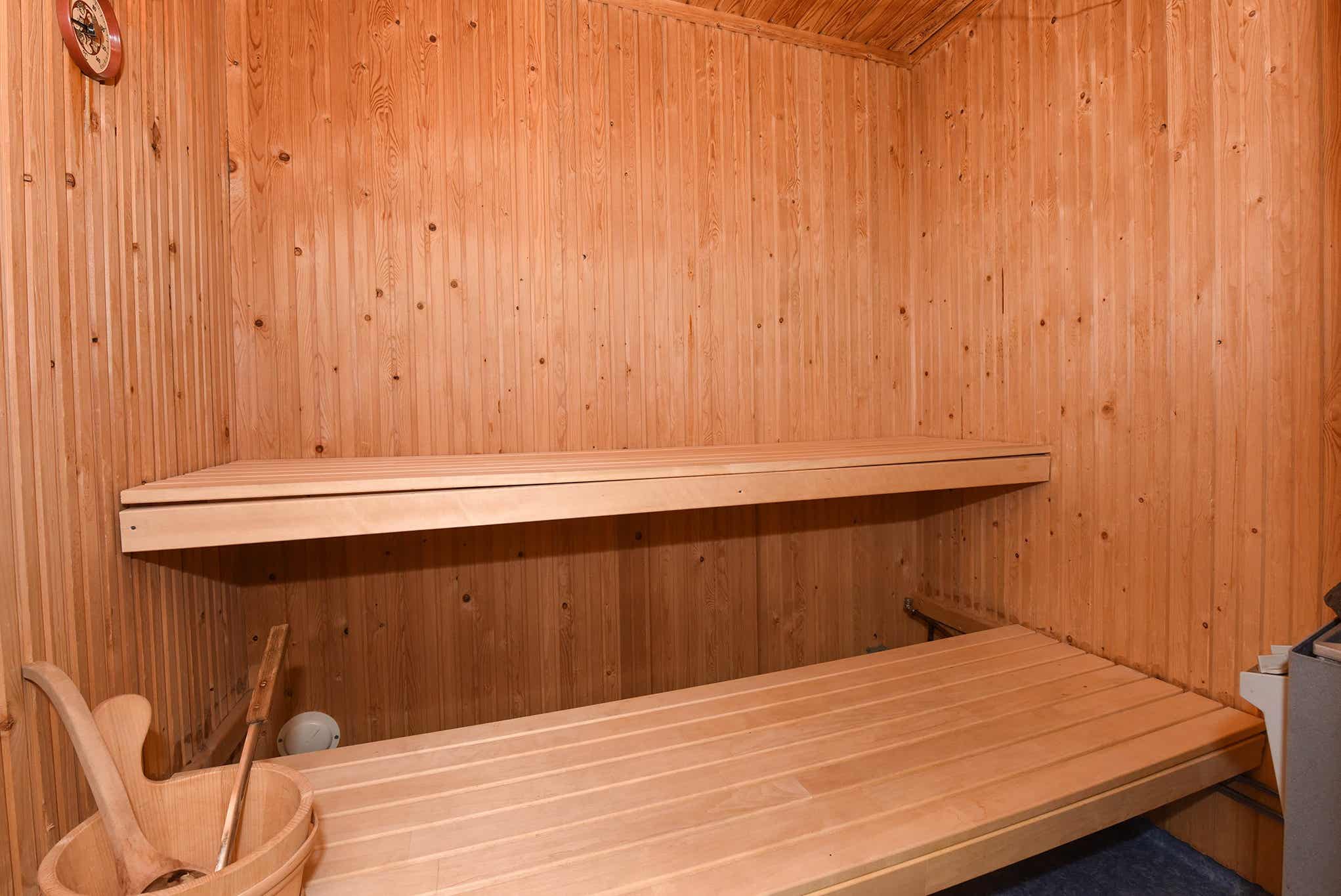 Badkamers:Badkamer 1: met douche/WC/sauna.