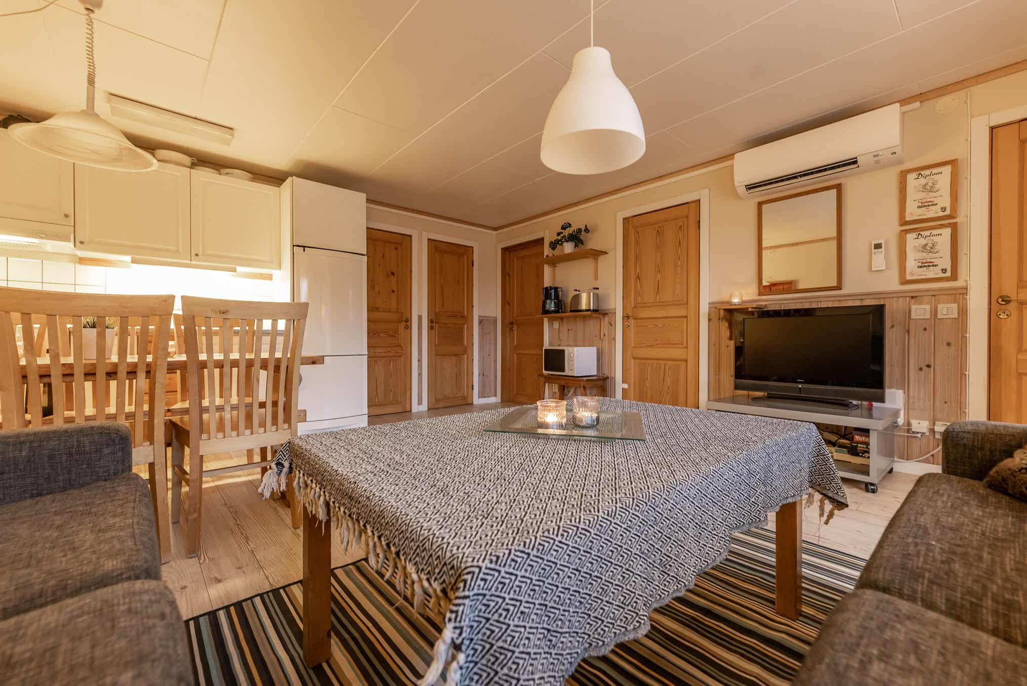 Röda Byn bevindt zich in Tandådalen. Appartement op de begane grond, 6+1 bedden, 50 m², woonkamer met gecombineerde keuken, 2 slaapkamers, 1 douche, 1 toilet, sauna.