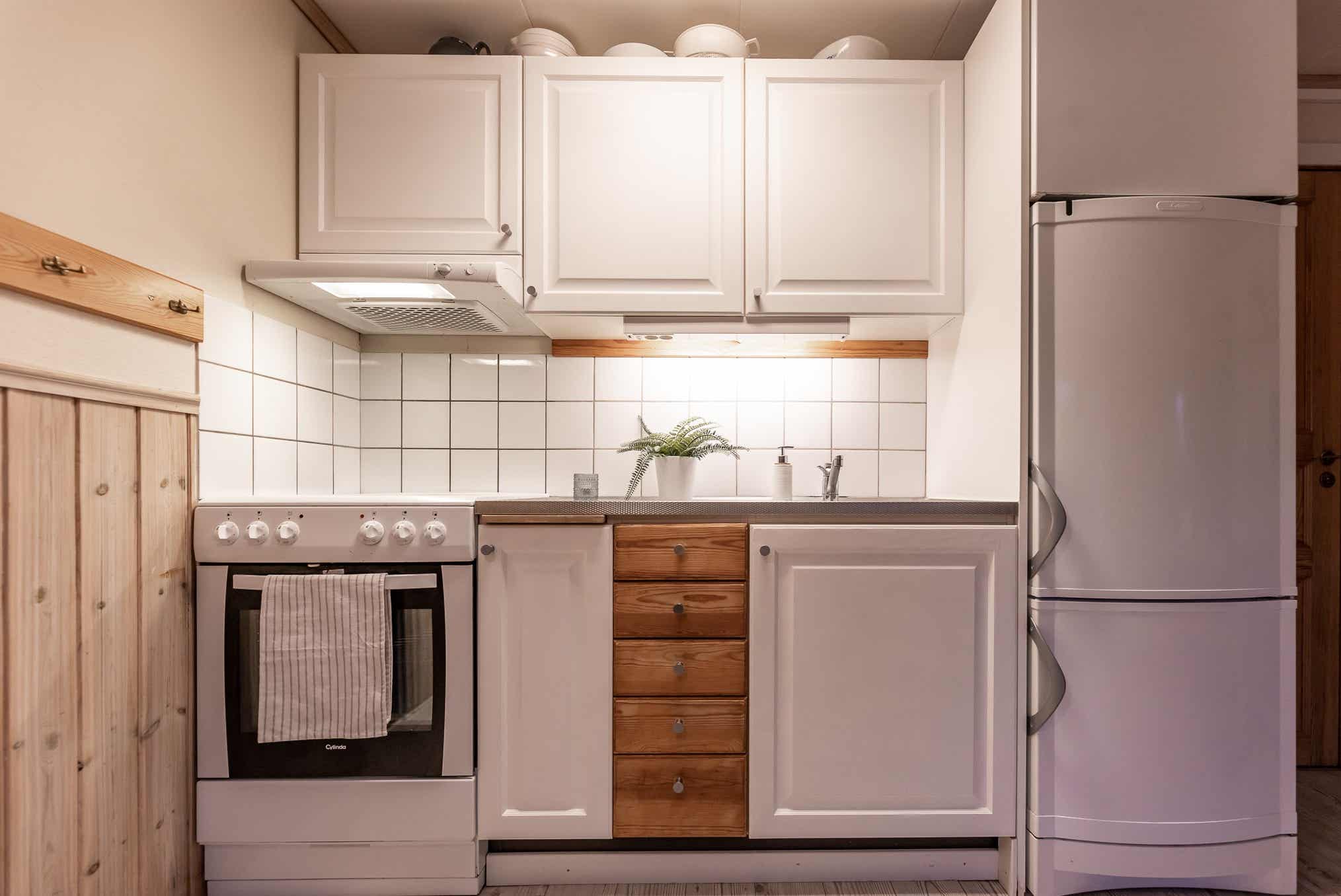 De keuken is voorzien van fornuis met oven, koelkast, vriezer, magnetron.