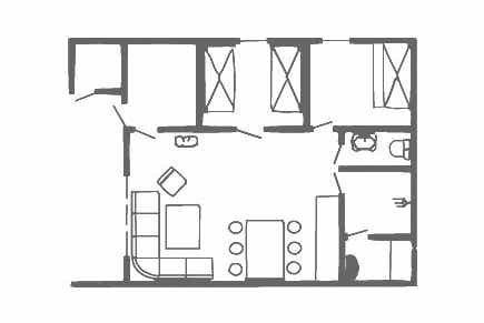Slaapkamers:Slaapkamer-1 = 2 stapelbedden. Slaapkamer-2 = 1 stapelbed met een onderbed van 140 cm breed.