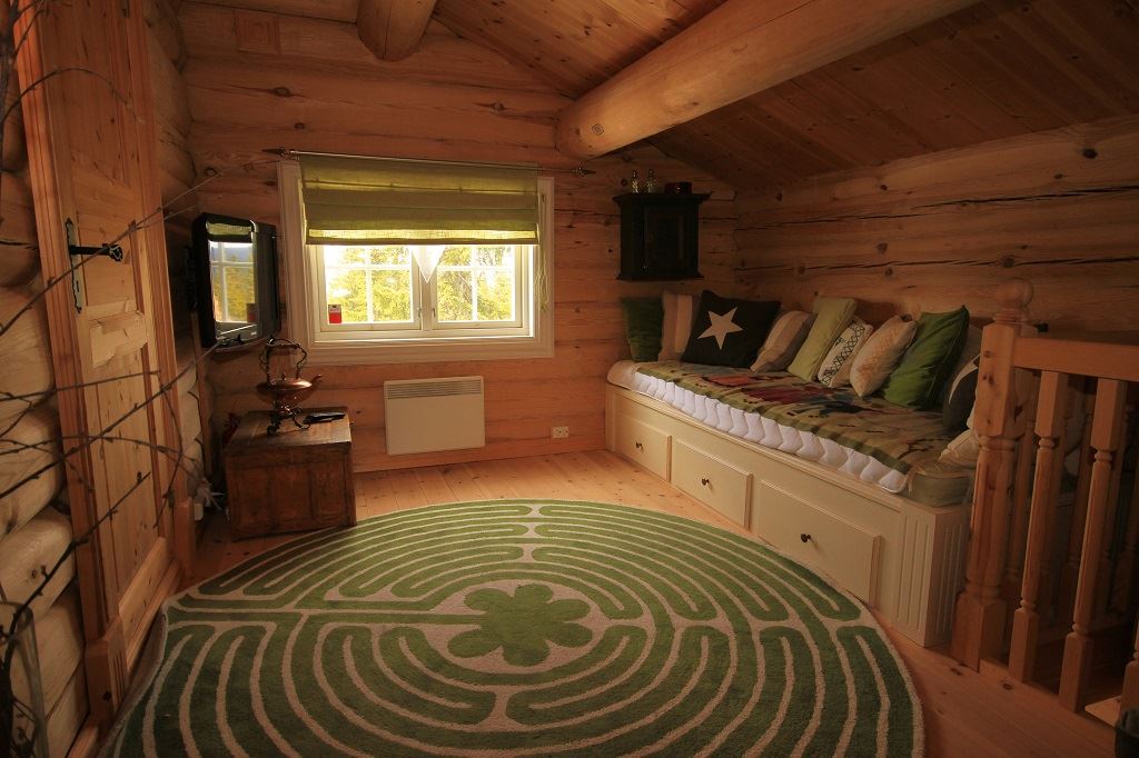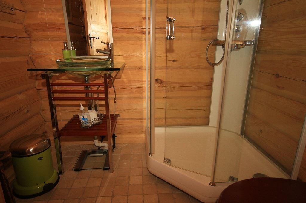 Grote hut met 5 slaapkamers + loft, 13-14 bedden, 2 badkamers en een sauna.