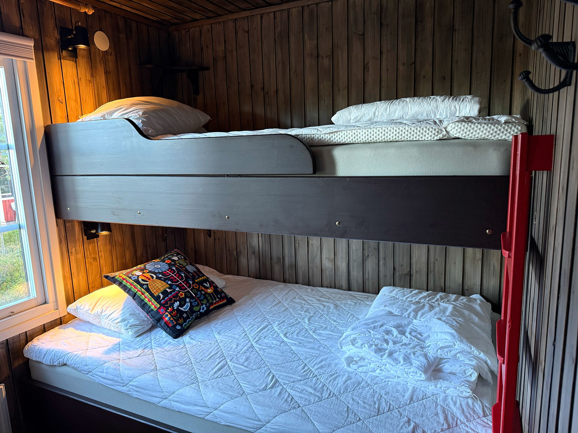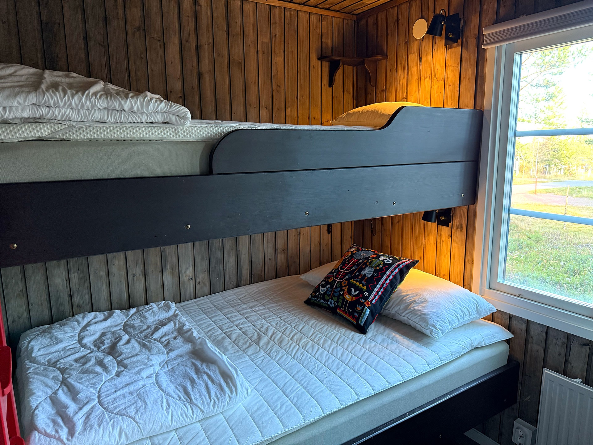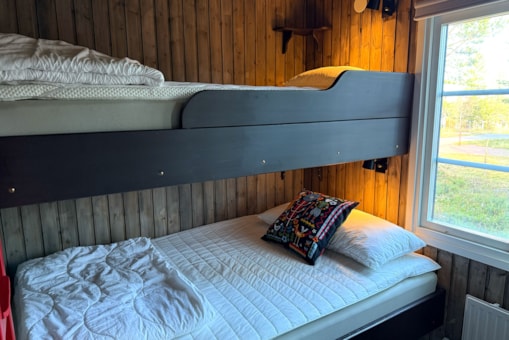 Slaapkamers:Slaapkamer-1 = 1 stapelbed met 120 cm breed onderbed en 90 cm breed bovenbed. Slaapkamer-2 = 1 stapelbed met 120 cm breed onderbed en 90 cm breed bovenbed.