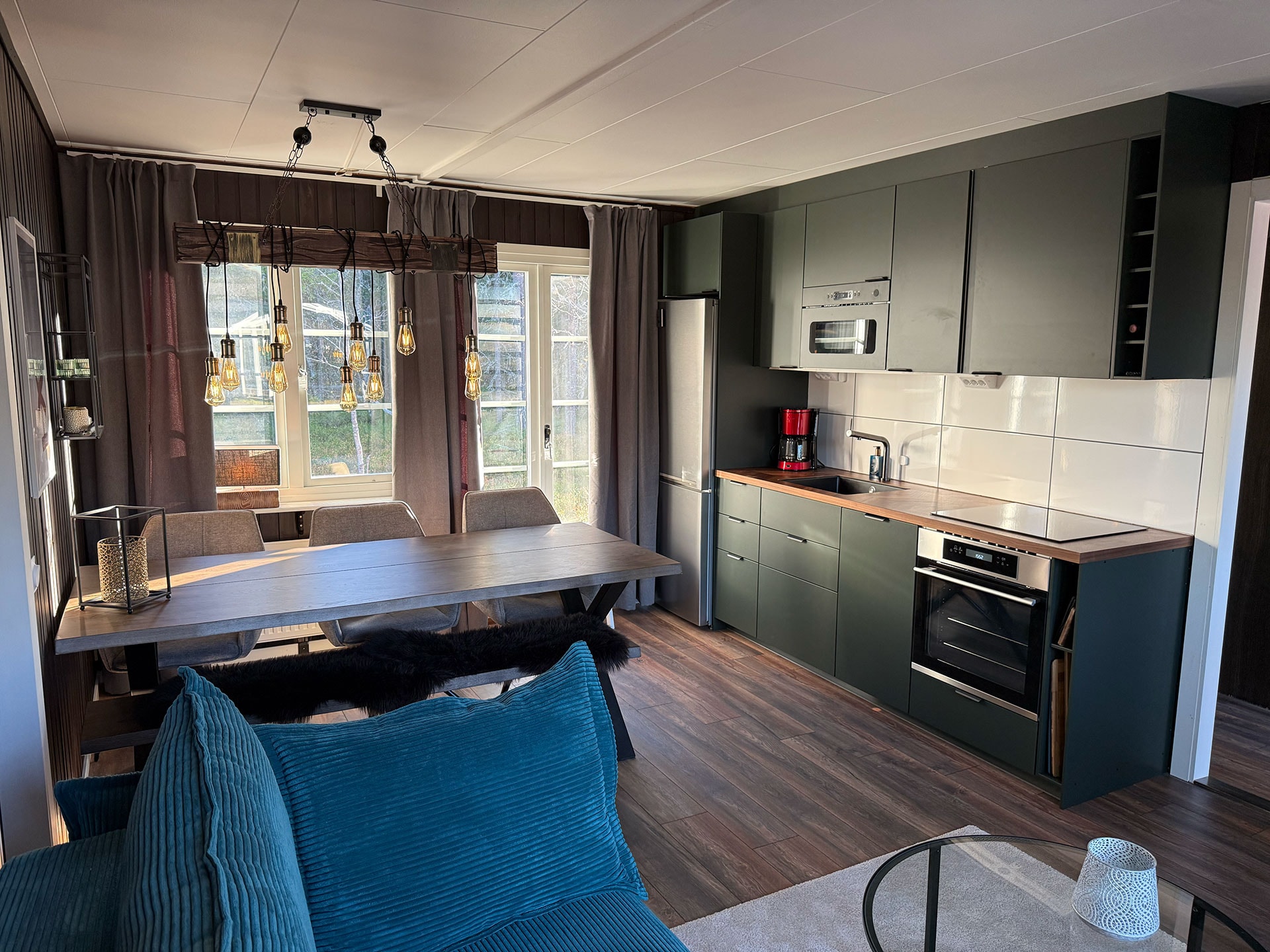 Woonkamer met gecombineerde keuken.