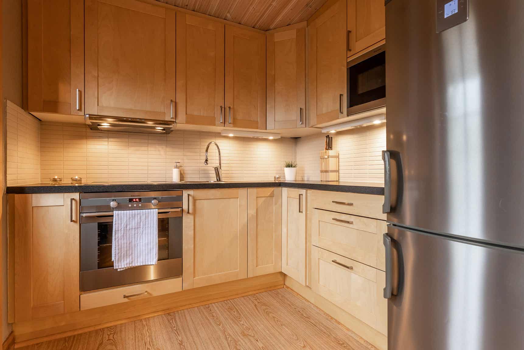 De keuken is voorzien van fornuis met oven, koelkast, vriezer.