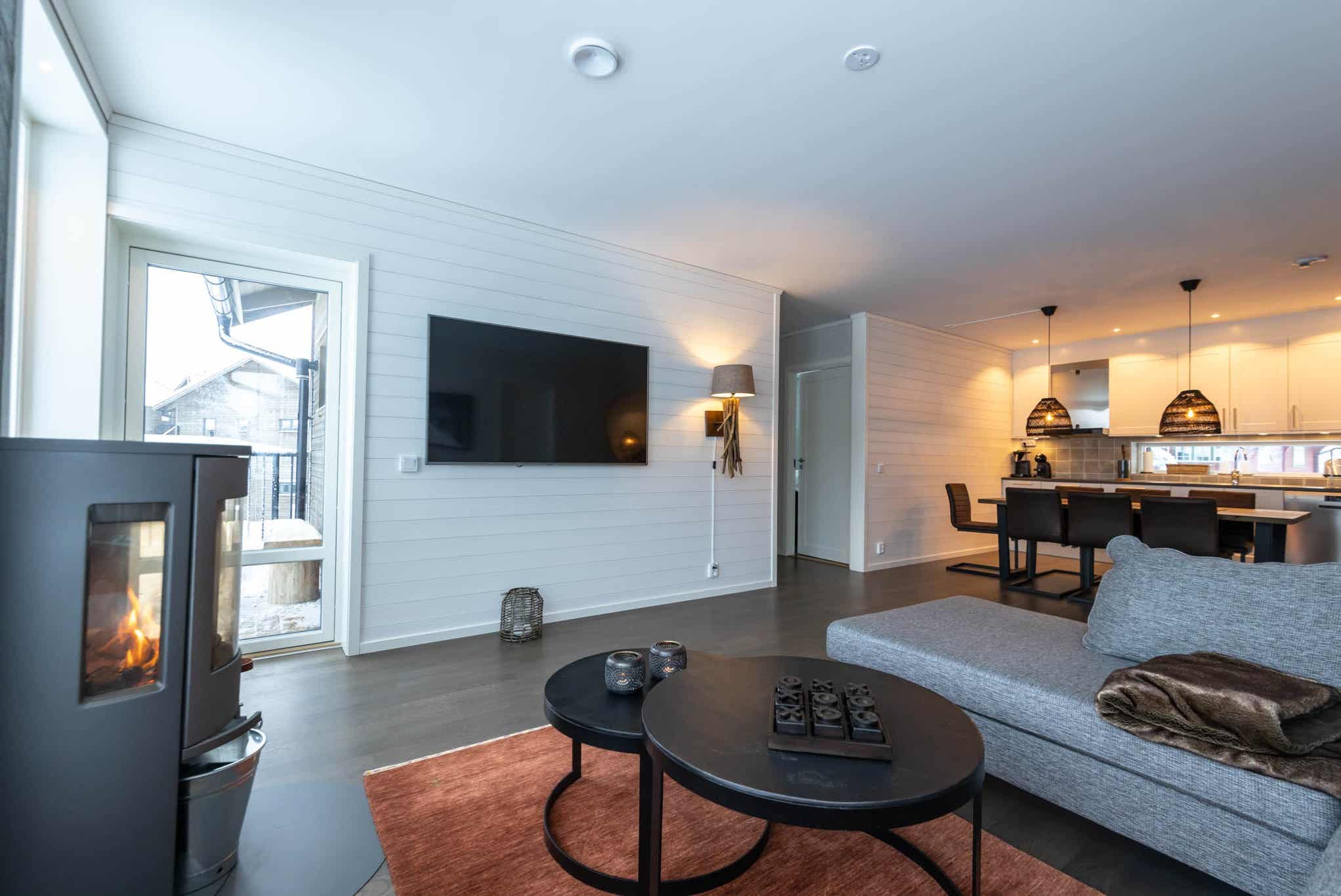 Woonkamer met gecombineerde keuken.
