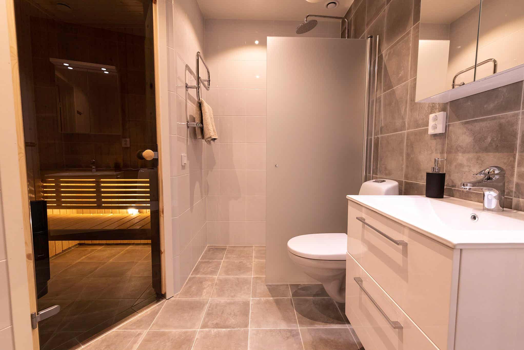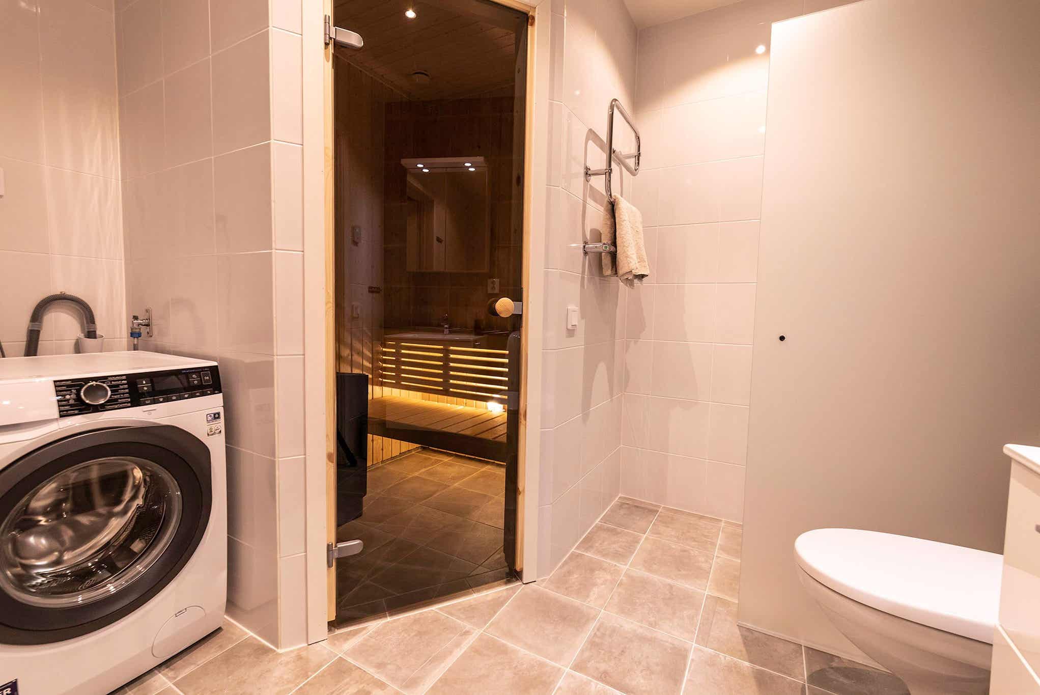 Badkamers:Badkamer 1: met douche/WC/sauna. Badkamer 2: met douche/WC/handdoekdroger.