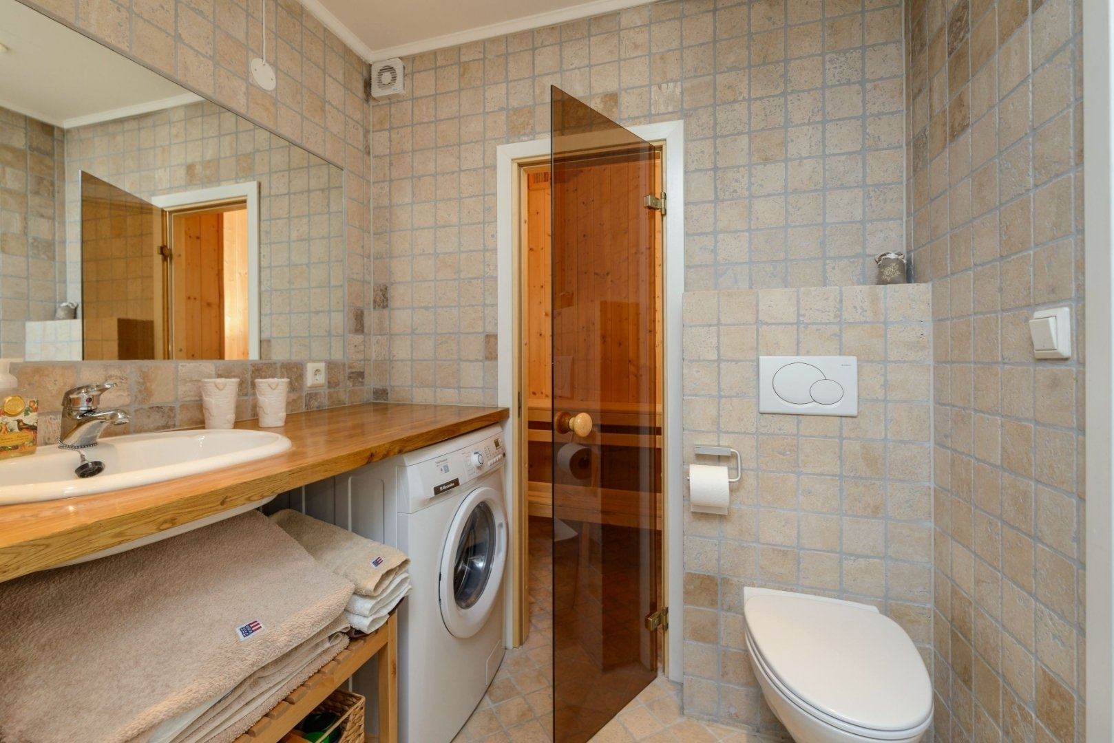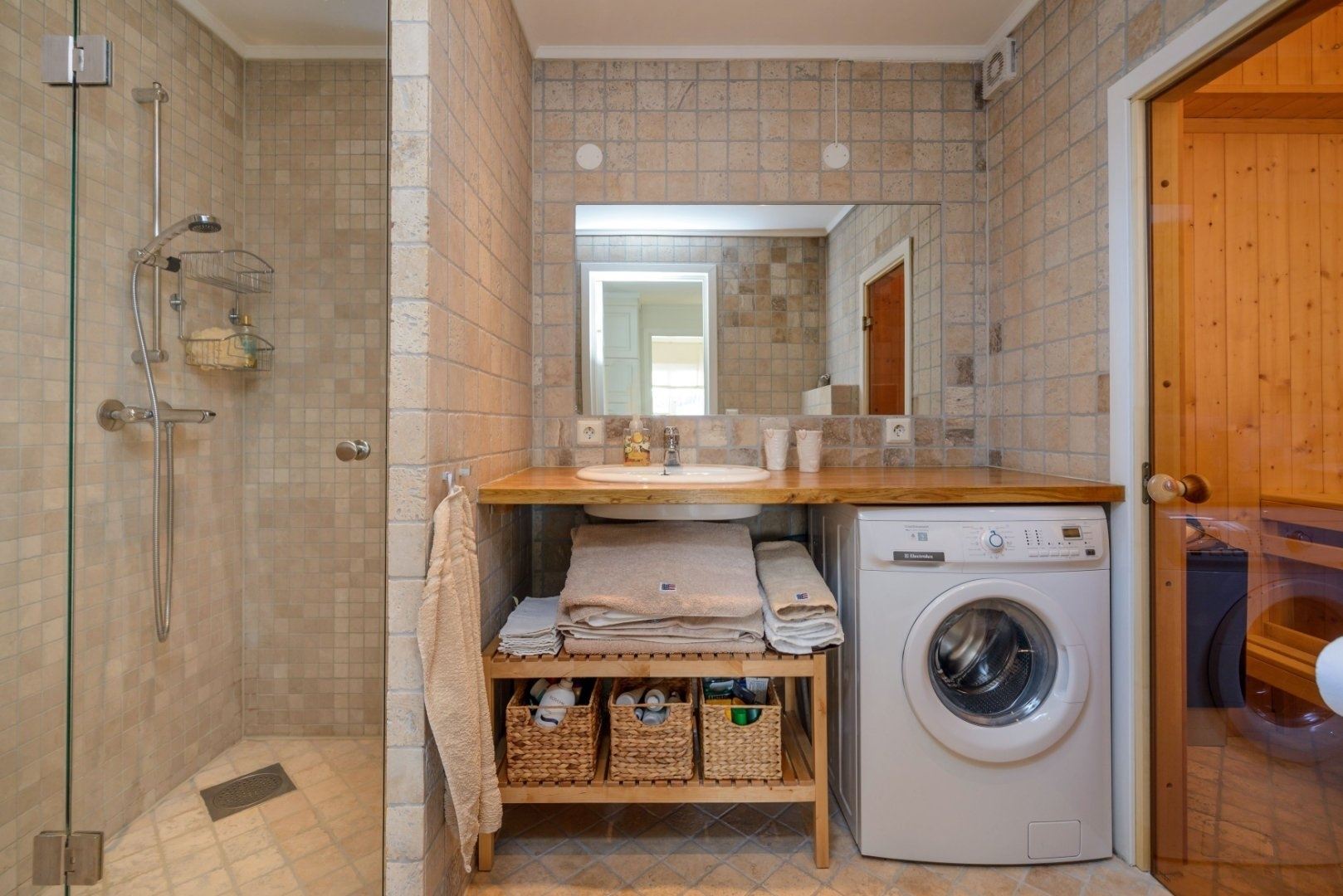 Badkamer 1: Douche, toilet, wastafel en sauna