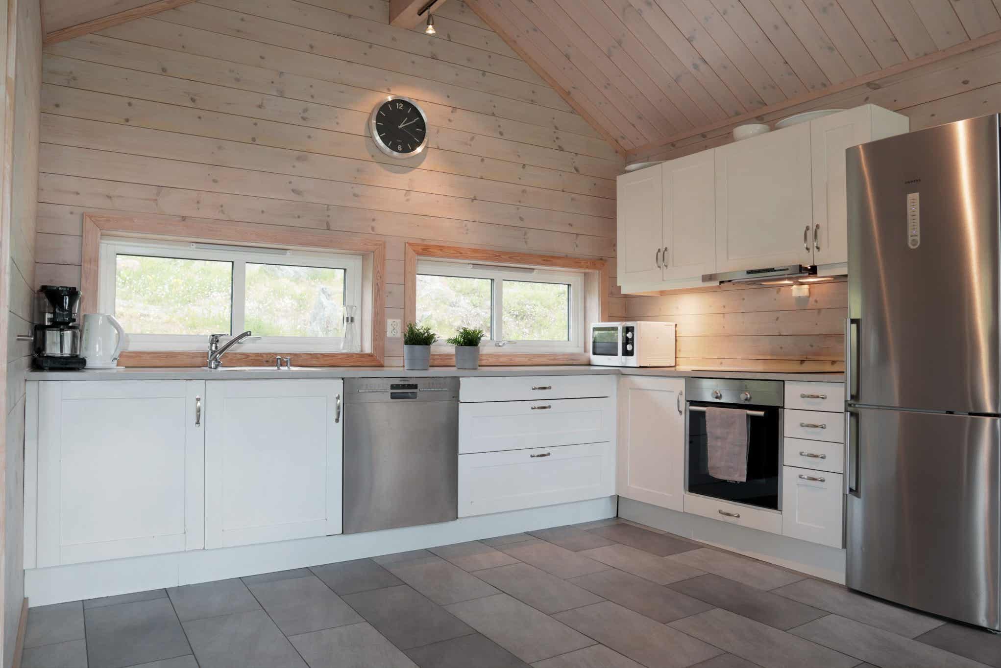 Keuken: fornuis, koelkast met vriesvak, vaatwasser, magnetron.