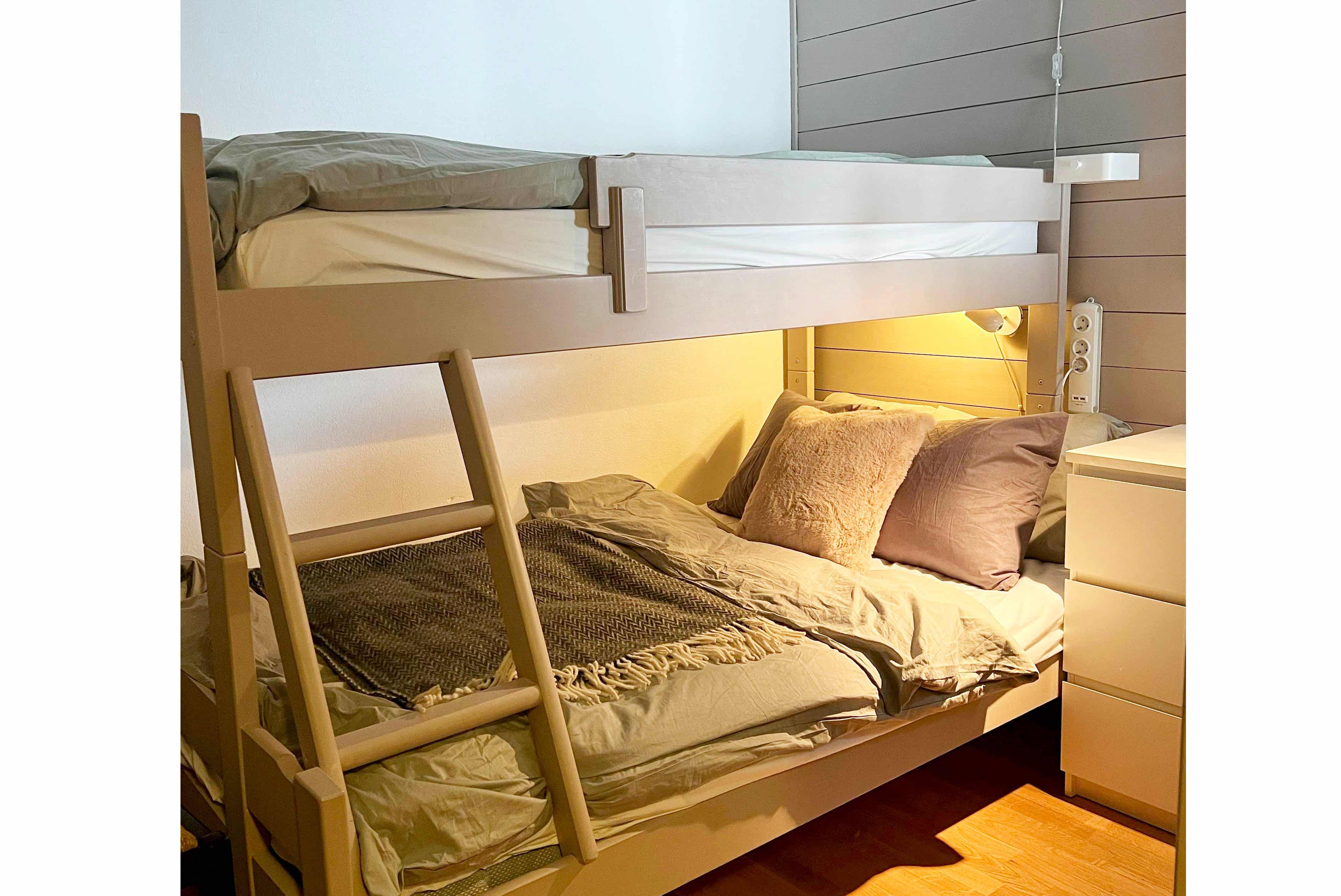Slaapkamers:Slaapkamer 1: 1 tweepersoonsbed. Slaapkamer 2: 1 stapelbed met 120 cm breed onderbed. Slaapkamer 3: 1 stapelbed met 120 cm breed onderbed.